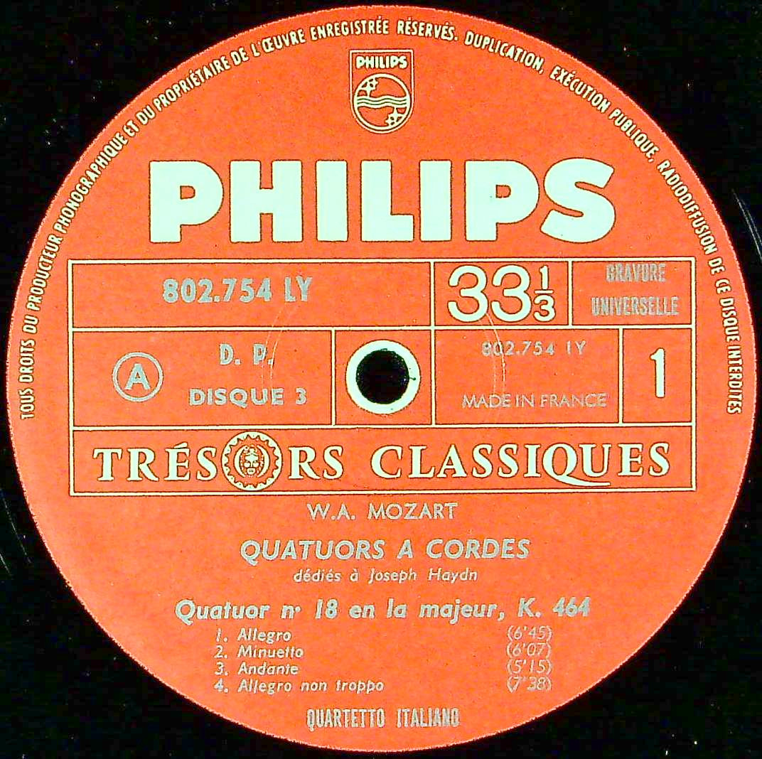 商品コード:REG-4551[欧PHILIPS] イタリアQt. / モーツァルト:ハイドン・セットVol.3/SQ18, 19番K.464, 465