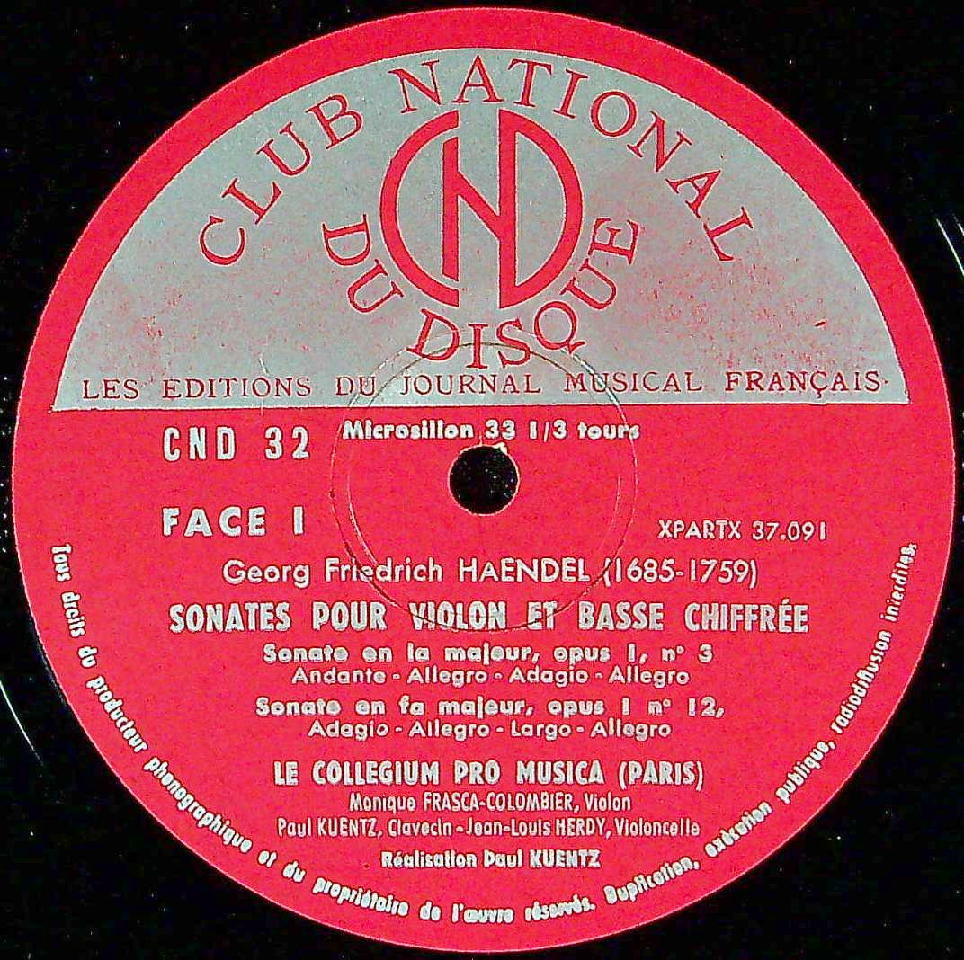 商品コード:1397-057b[CLUB NATIONAL] パリ・コレギウム・プロ・ムジカ・メンバー/ ヘンデル:Vnソナタ集Op.1(抜粋4曲)/3番, 13番, 12番, 15番