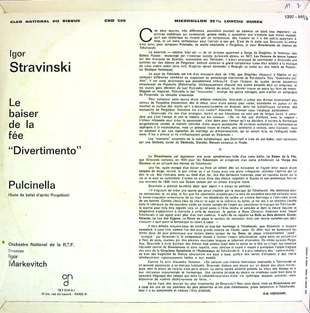 商品コード:1397-049b[CLUB NATIONAL] I.マルケヴィチ/ ストラヴィンスキー:組曲「ディヴェルティメント」, バレエ組曲「プルチネルラ」