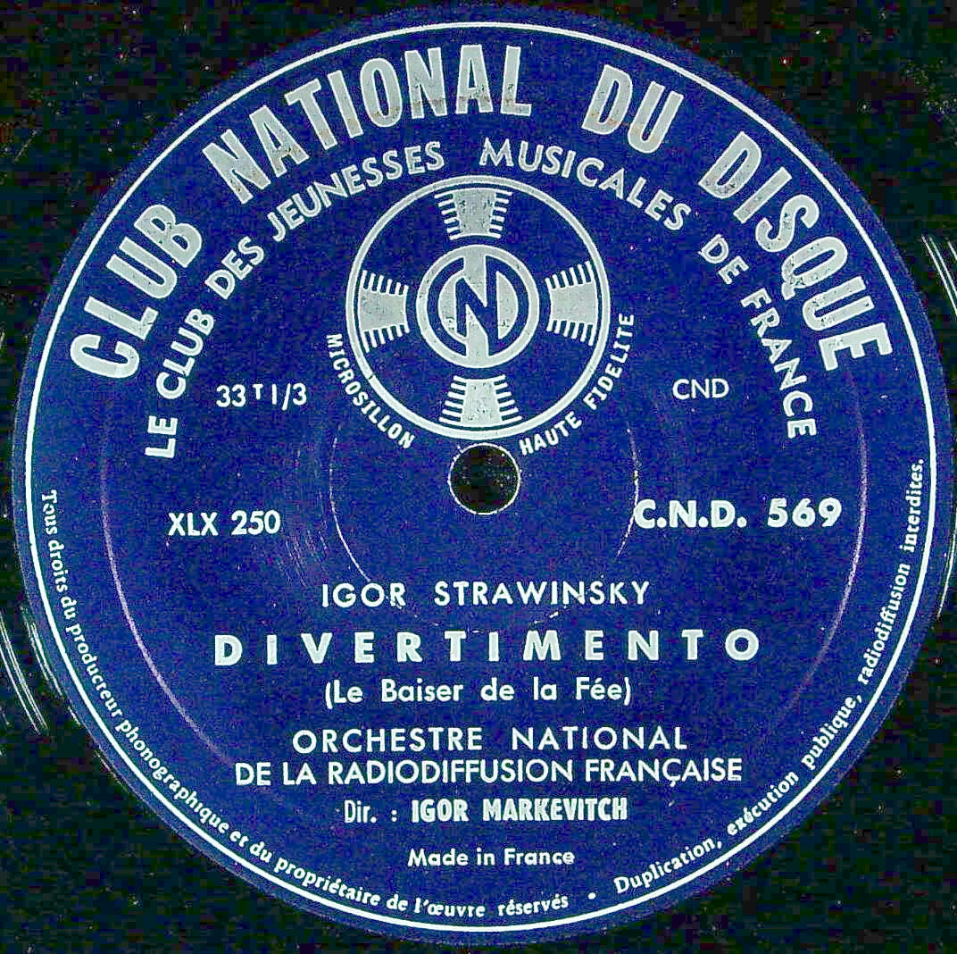 商品詳細:マルケヴィチは当初、EMIの名プロデューサーのウォルター・レッグのもとでフィルハーモニア管弦楽団と多くの録音を行った。ウォルター・レッグに拾ってもらったといって過言ではない。マルケヴィチのEMI系録音の中でも、初期のフィルハーモニo.を振った英国EMI録音と1954年からフランスのオケを振ったLes Industries Musicales Et Electriques Pathé Marconi. Paris の後期EMI録音とに分かれる。ウォルター・レッグには恩義があったが、恐らく権威主義的な英国より自由度の高いフランスへ移籍した事でルケヴィチの音楽は大きく変化した。これはフランスへ移籍した最初の年の録音になる。正規盤はフランスCOLUMBIA:FCX 350で発売され、各国EMIレーベルからも発売された。マルケヴィチはこの契約移籍を機に、活動の拠点をフランス国立放送管弦楽団(Orchestre National de la Radiodiffusion Française)やコンセール・ラムルー管弦楽団などのフランスのオーケストラへ移行した。フランスへ拠点を移したことでマルケヴィチの音楽は鮮明な色彩と鋭いリズムを持つ演奏で数多くの名盤を残すことになる。パテ移籍後は自由度が増し、バッハ、ショスタコーヴィチ、ハイドンなど幅広い録音が行われるようになった。同時期に並行してDGGにも録音を行っており、いよいよ名声が高まる時期であった。これはデイアギレフ時代から得意としたストラヴィンスキー作品2曲。どちらもバレエ音楽であるが組曲版で演奏している。オリジナルのFCX 350は希少で入手は簡単ではない。これはクラブ・レーベルであるClub National du Disqueからのサードパーティ盤である。店頭には並ばず、会員登録して通信販売で安価に購入出来る仕組みがあった。Club National du DisqueはEMI系との繋がりが強く、FCXや33CXで過去に発売された音源をクラブ盤として発売したレーベルであり、オリジナル録音も手掛けた大手レーベルの一つである。プレスはオリジナル盤のマスターを使ったパテ・プレスが大半で、初出から数年経った名盤を安価に供給した庶民派レーベルであるが音質は大変良い。フランスではこうしたクラブ盤が乱立し、多くの家庭にクラシックLPが眠ることになる。欧州最大のレコード大国である。