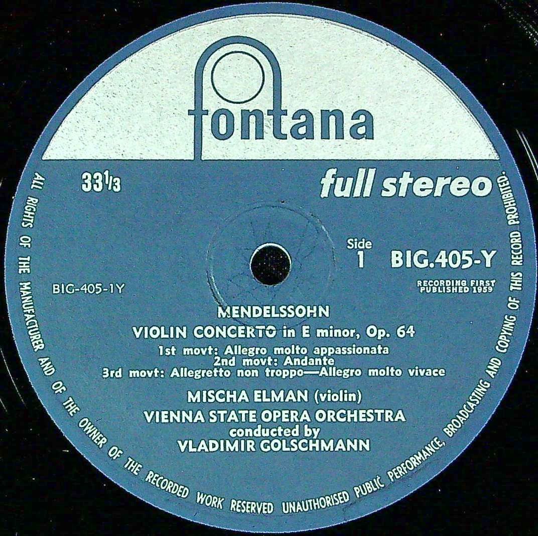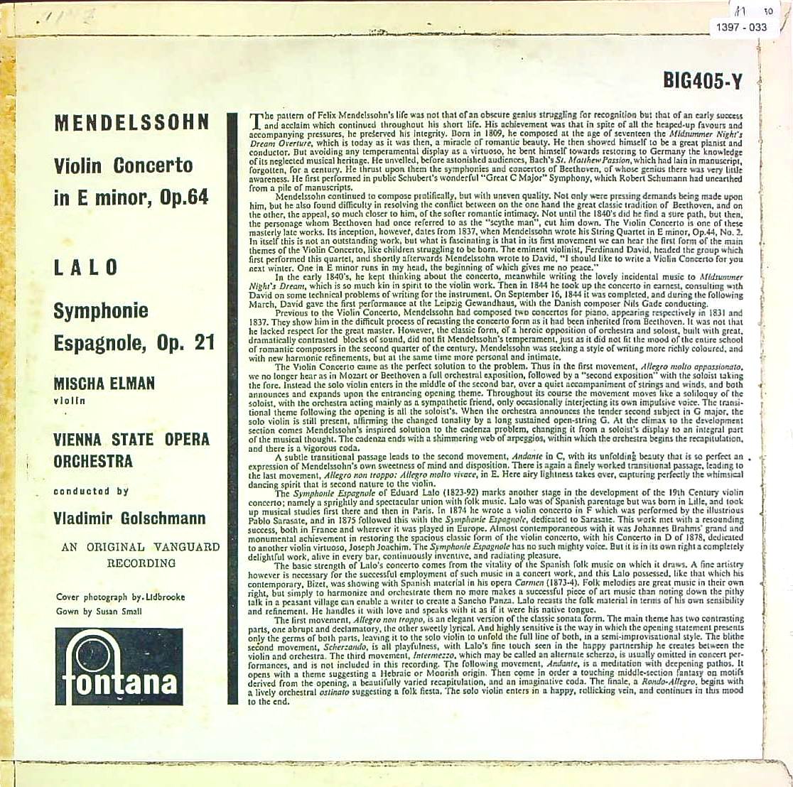 商品コード:1397-033[FONTANA] M.エルマン(vn) / メンデルスゾーン:Vn協奏曲Op.64, ラロ:スペイン交響曲Op.21