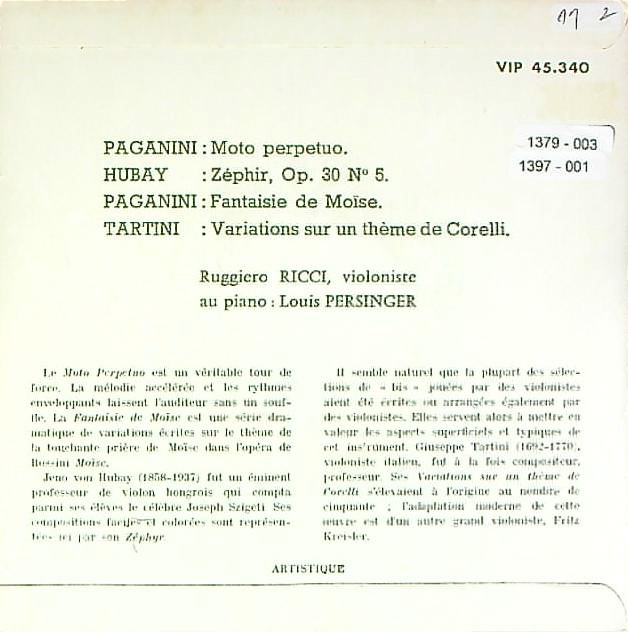 商品コード:1397-001[Pathé-VOX] R.リッチ(vn)/ パガニーニ:常動曲, モーゼ幻想曲, フバイ:そよ風, タルティーニ:コレッリ変奏曲