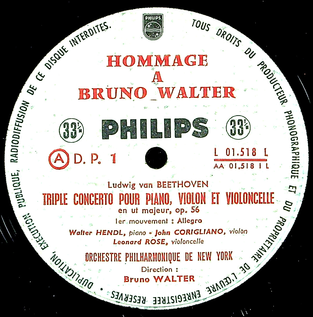 商品コード:REG-4581[欧PHILIPS] W.ヘンドル(pf) J.コリリアーノ(vn) L.ローズ(vc)/ ベートーヴェン:三重協奏曲Op.56, ブラームス:運命の歌Op.54