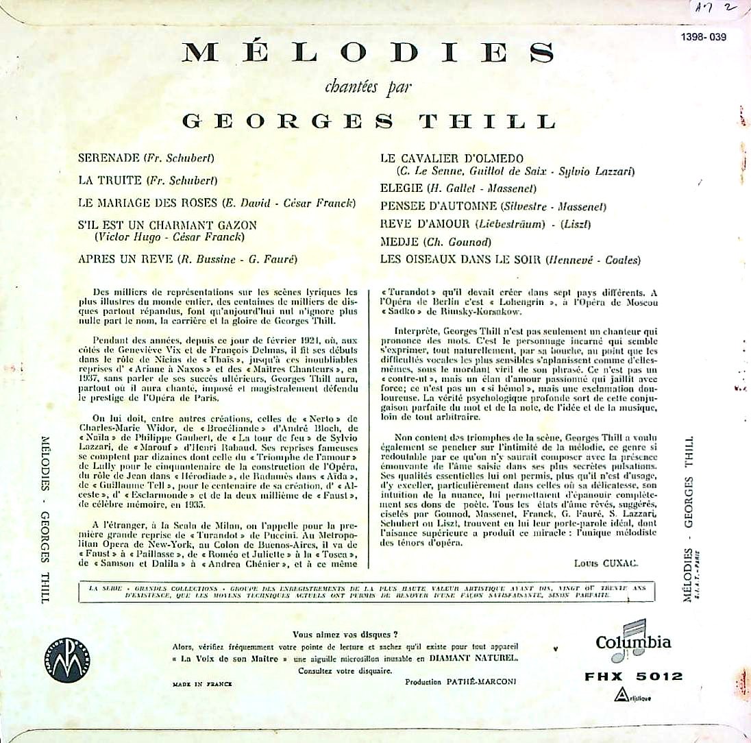 商品コード:1398-039[COLUMBIA] G.ティル(t)/ Mélodies(全11曲)/シューベルト:鱒, フランク:薔薇の結婚, フォーレ:夢のあとに, マスネ:エレジー, リスト:愛の夢, グノー:メジェ 他