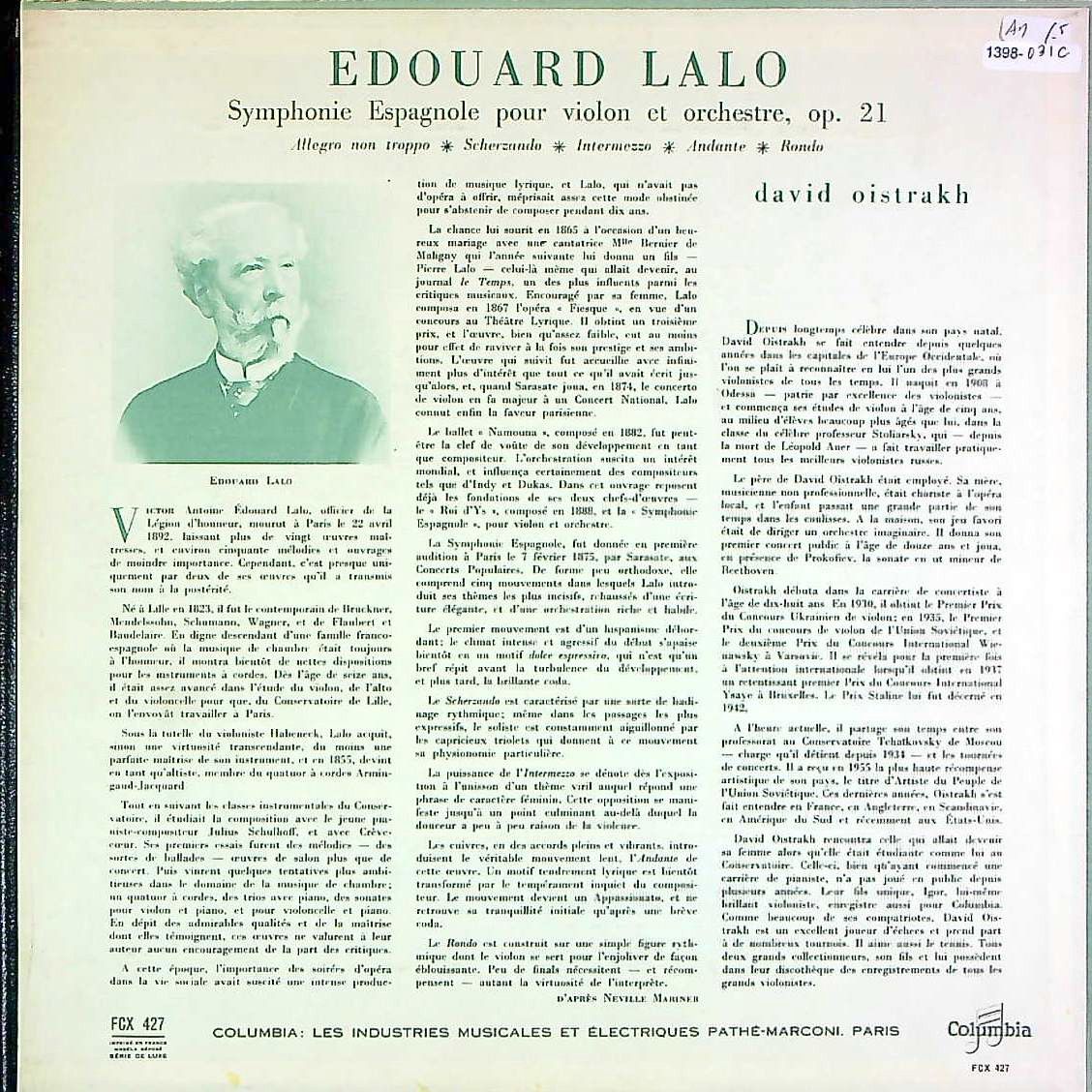 商品コード:1398-031c[COLUMBIA] D.オイストラフ(vn)/ ラロ:スペイン交響曲Op.21