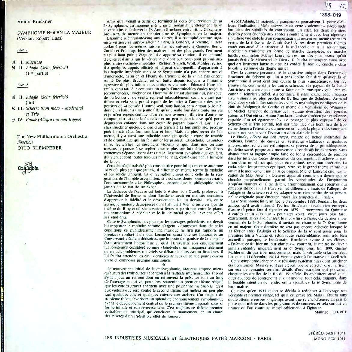 商品コード:1398-019[COLUMBIA] O.クレンペラー/ ブルックナー:交響曲6番(1881ハース版)