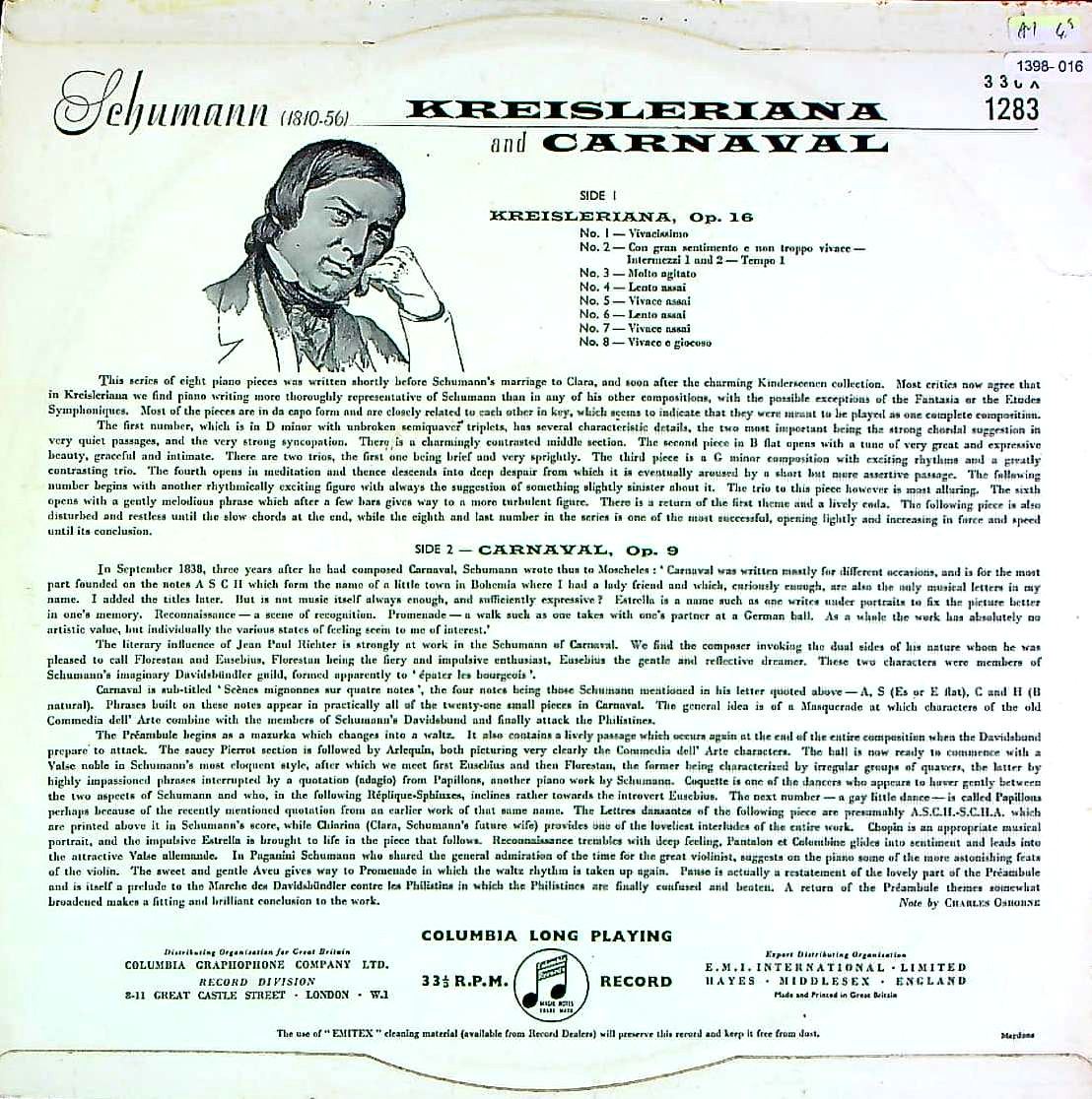 商品コード:1398-016n[COLUMBIA] G.アンダ(pf) / シューマン:Pf作品集/クライスレリアーナOp.16, 謝肉祭Op.9