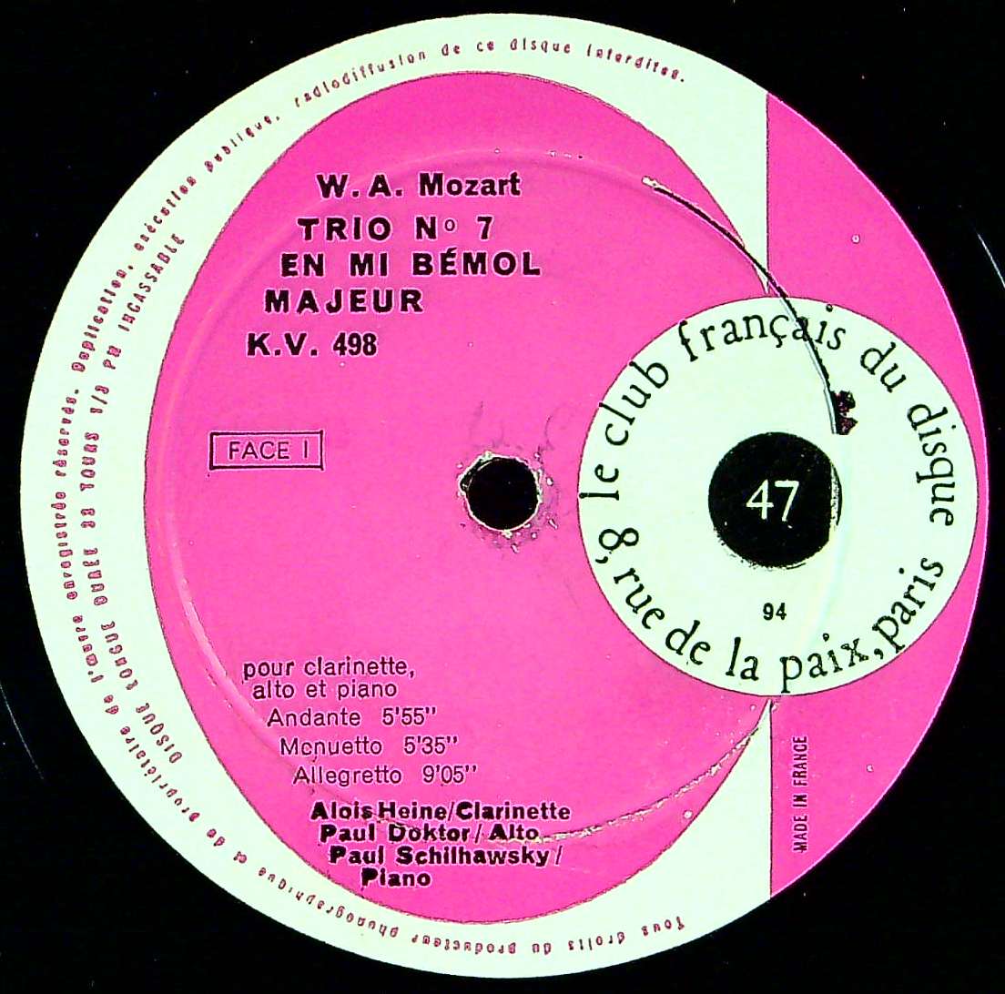 商品コード:1398-008[Club Français] A.ハイネ(cl) P.ドクトル(va) P.シルハフスキー(pf) 他/ モーツァルト:ClトリオK.498, 弦楽四重奏曲15番K.421