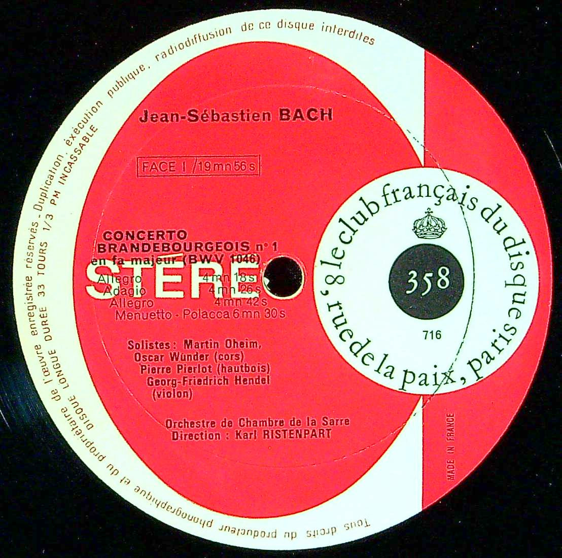 商品コード:1398-001[Club Français] K.リステンパルト指揮ザール室内o. / バッハ:ブランデンブルク協奏曲BWV.1046~1051