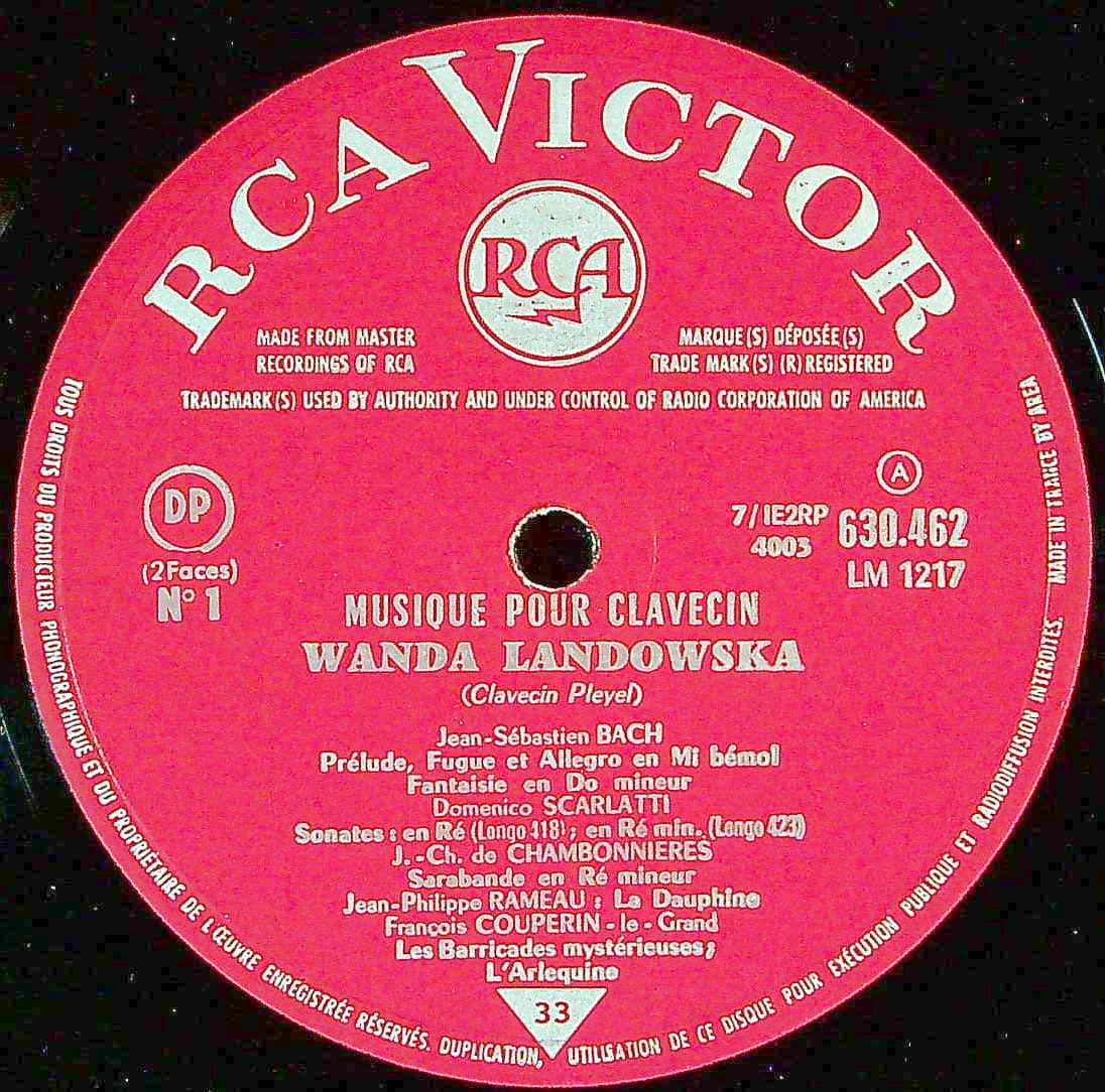 商品コード:1399-063b[RCA] W.ランドフスカ(cemb) / Cembリサイタル(全13曲)/バッハ, スカルラッティ, ラモー 他