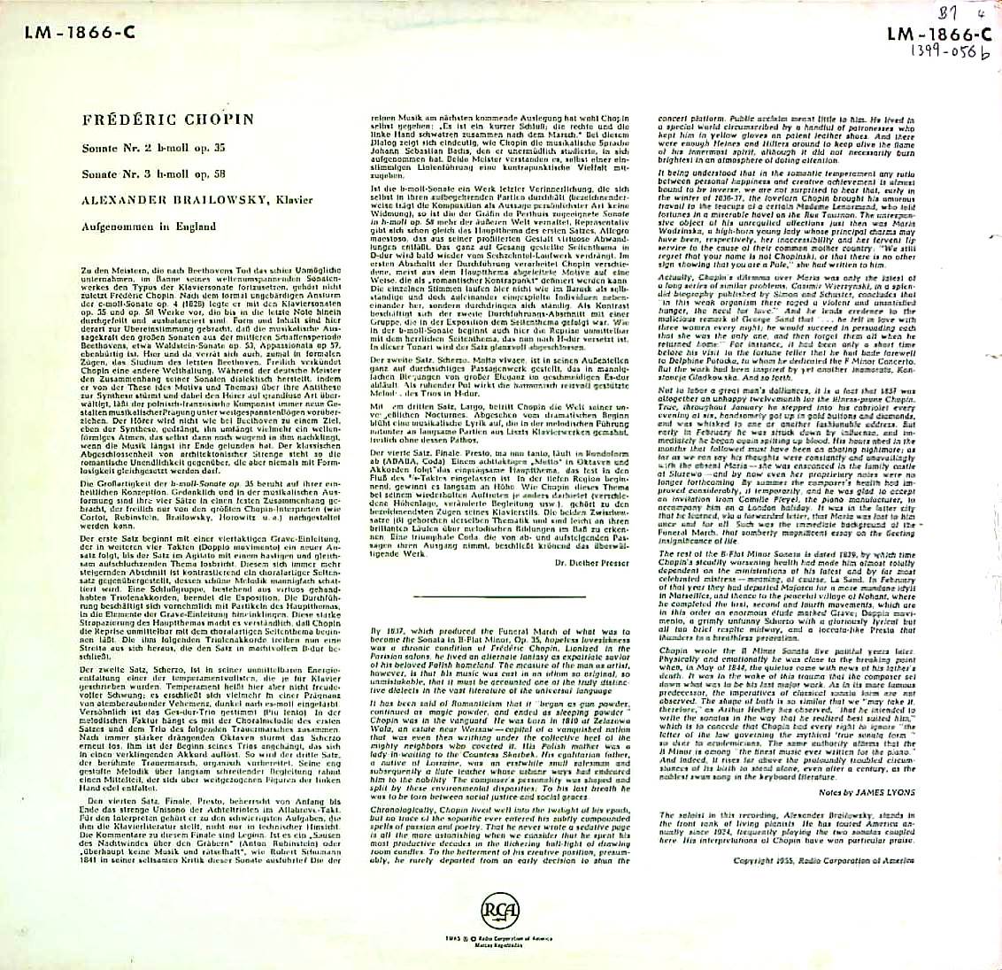 商品コード:1399-056b[RCA] A.ブライロフスキー(pf) / ショパン:Pfソナタ2番Op.35「葬送」, 3番Op.58