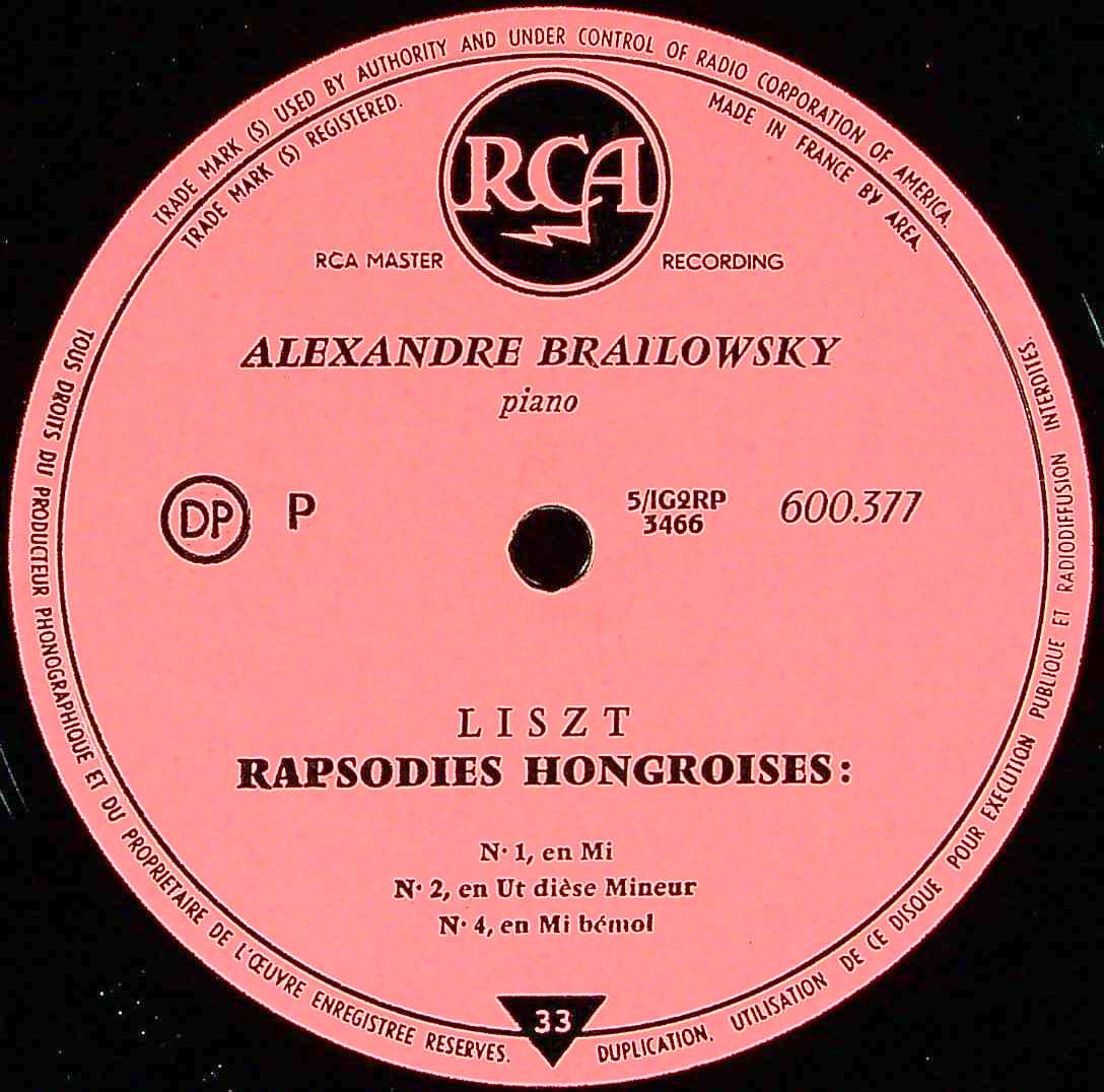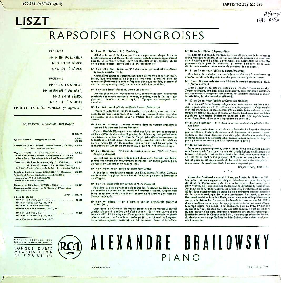 商品コード:1399-054b[RCA] A.ブライロフスキー(pf) / リスト:ハンガリー狂詩曲1~15番(全19曲/抜粋15曲)