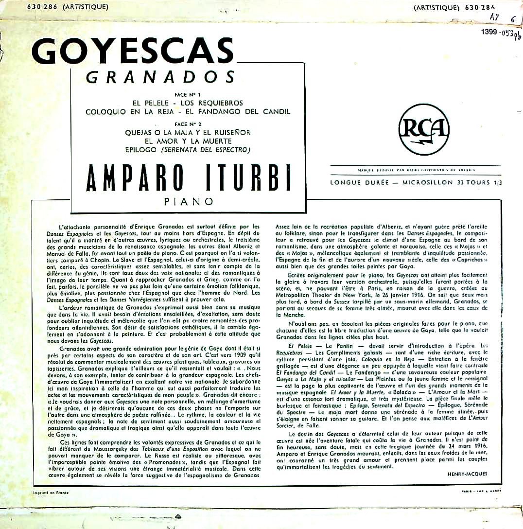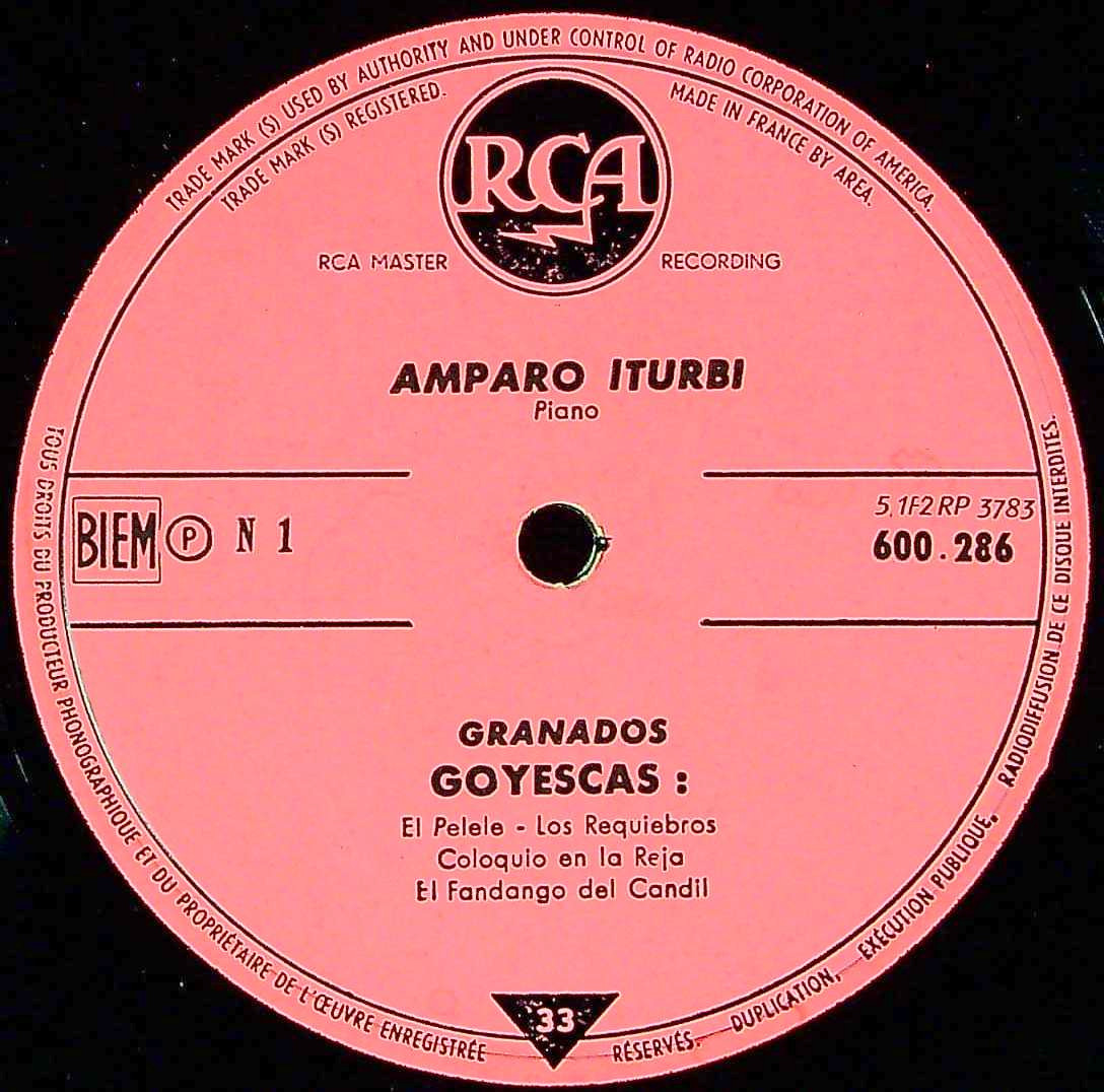 商品コード:1399-053pb[RCA] A.イトゥルビ(pf) / グラナドス:ピアノ組曲「ゴイェスカス」/恋する若者たち第1部&2部, 補遺・第7曲「わら人形」