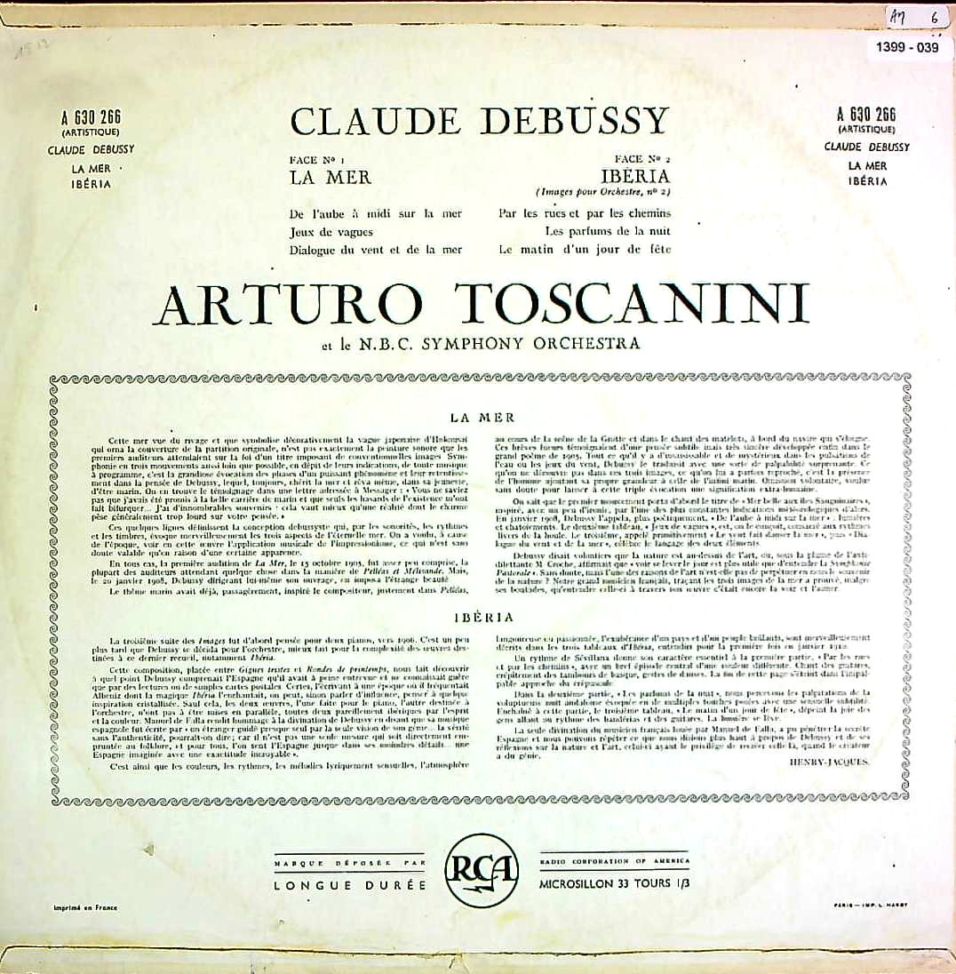 商品コード:1399-039[RCA] A.トスカニーニ/ ドビュッシー:交響的素描「海」(全3楽章), イベリア(全3曲)