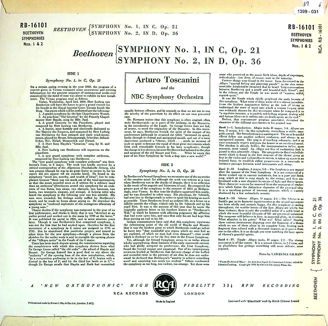 商品コード:1399-031[RCA] A.トスカニーニ/ ベートーヴェン:交響曲1番Op.21, 2番Op.36