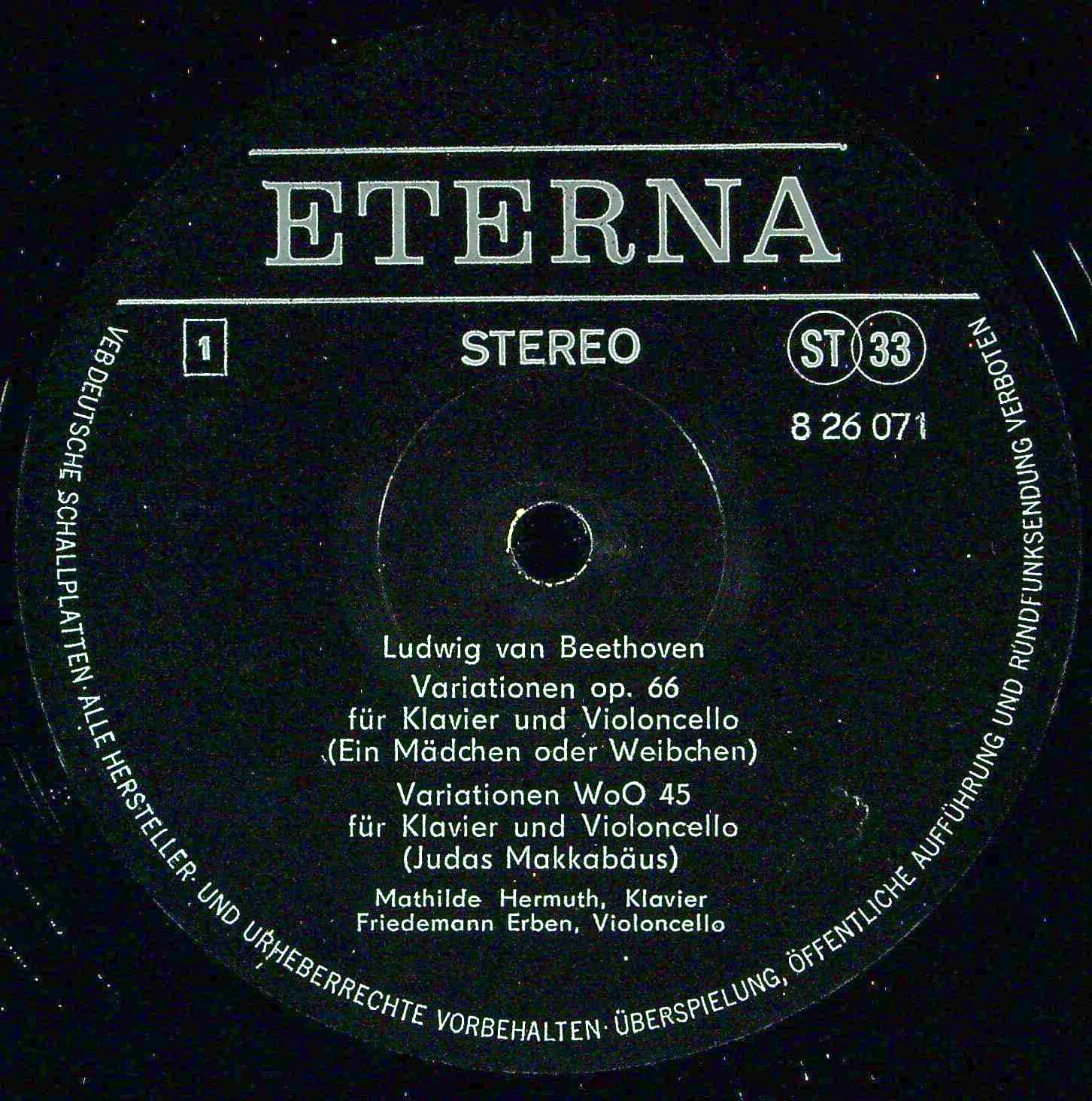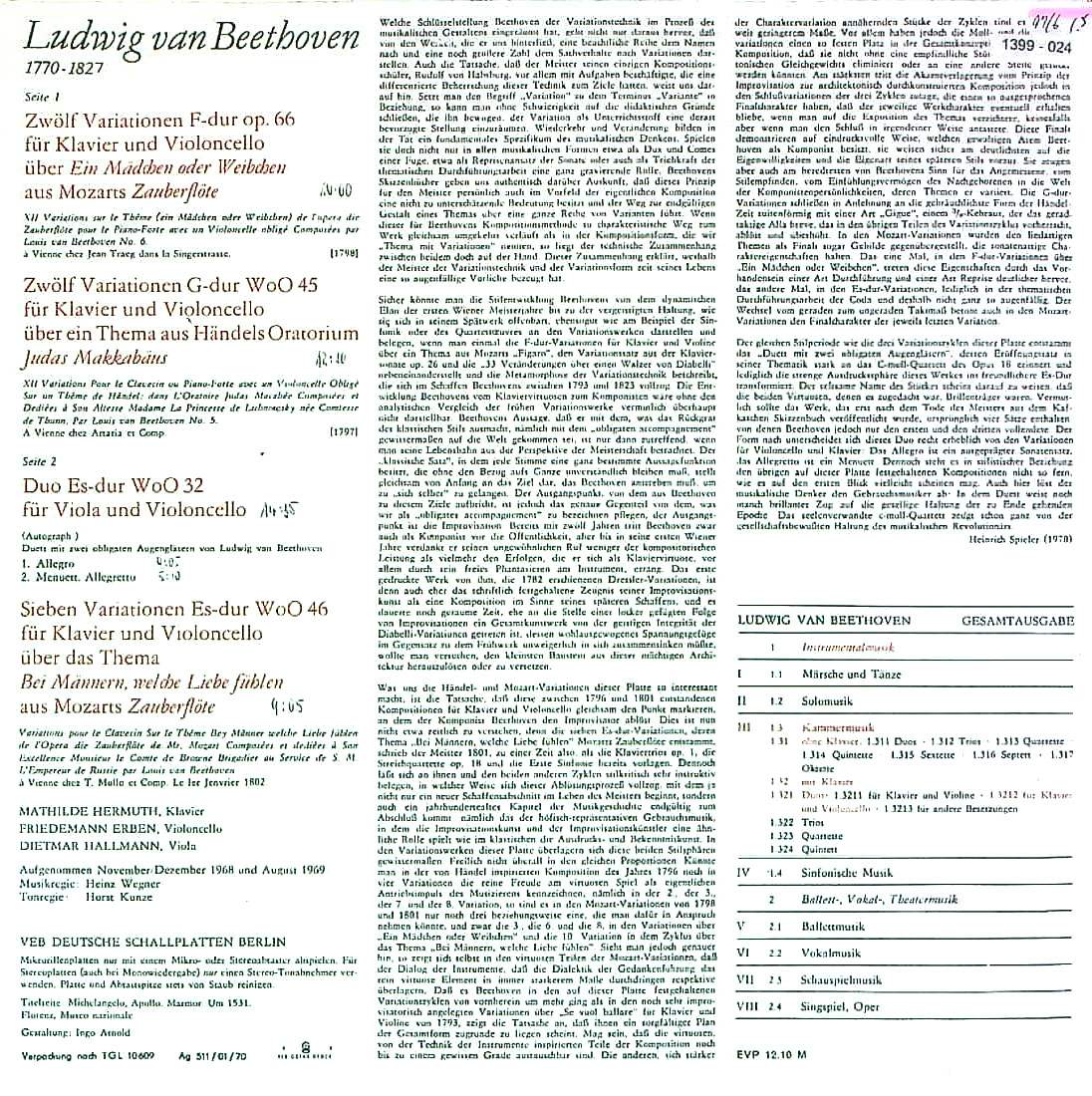 商品コード:1399-024t[ETERNA] F.エルベン(vc) 他/ ベートーヴェン:「魔笛」変奏曲Op.66, WoO.46, 「ユダス・マカベウス」変奏曲WoO.45 他