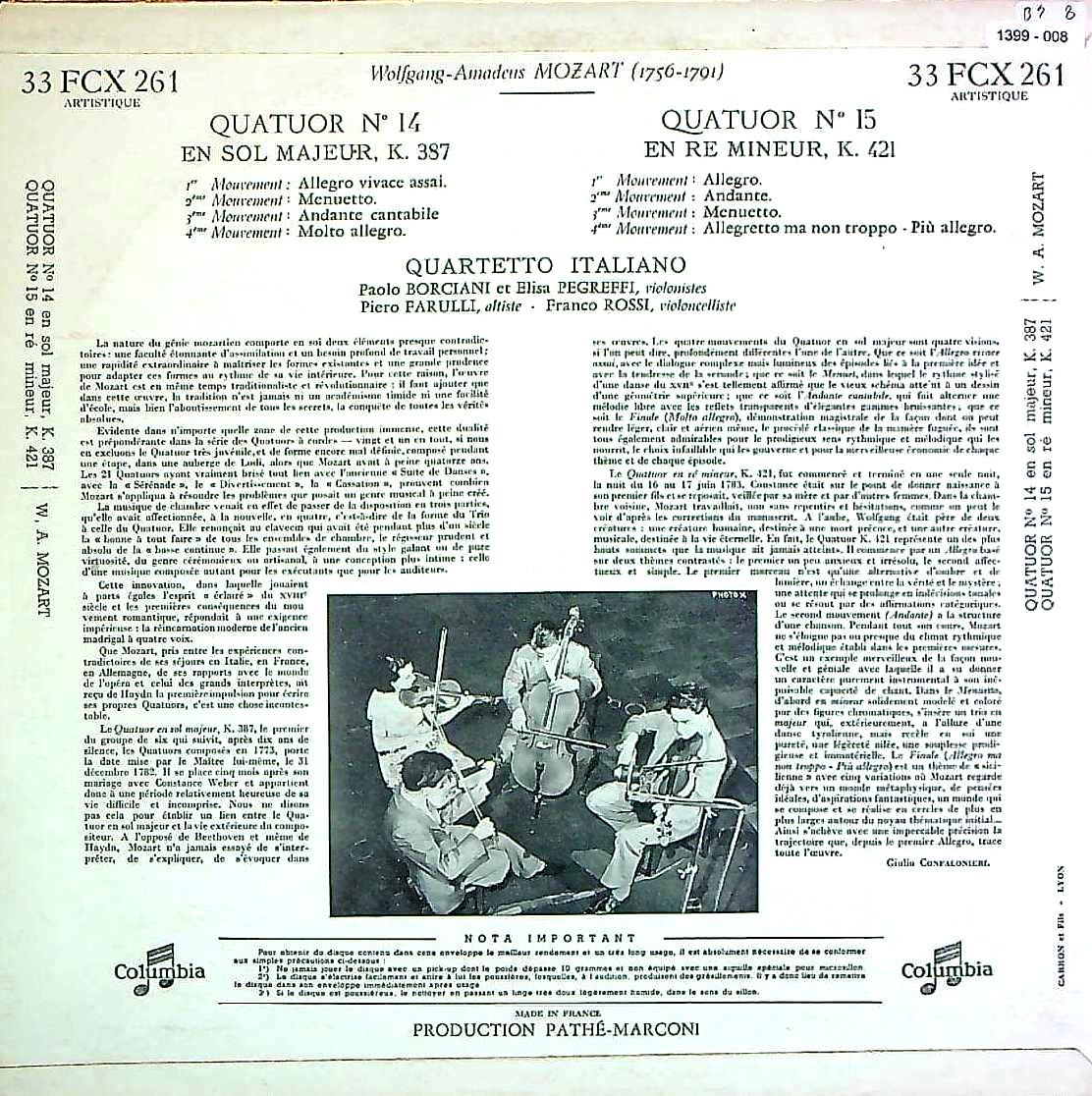 商品コード:1399-008n[COLUMBIA] イタリアQt. / モーツァルト:弦楽四重奏曲14番K.387, 15番K.421