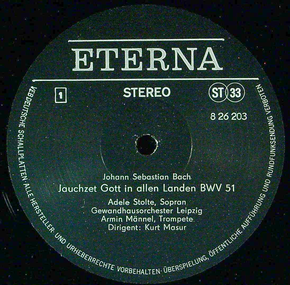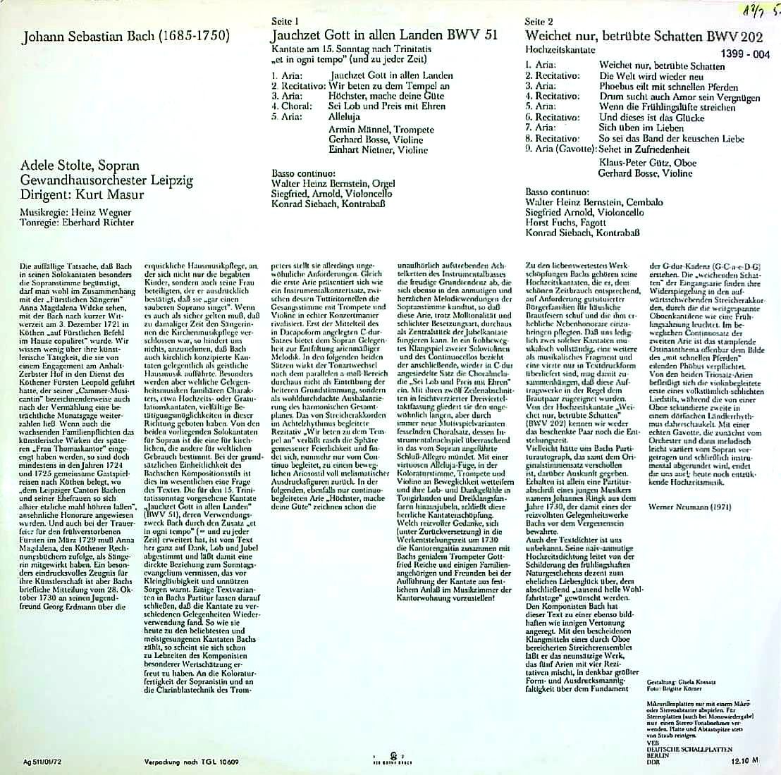 商品コード:1399-004n[ETERNA] A.シュトルテ(s) K.マズア指揮/ バッハ:カンタータ51番BWV.51, カンタータ202番BWV.202