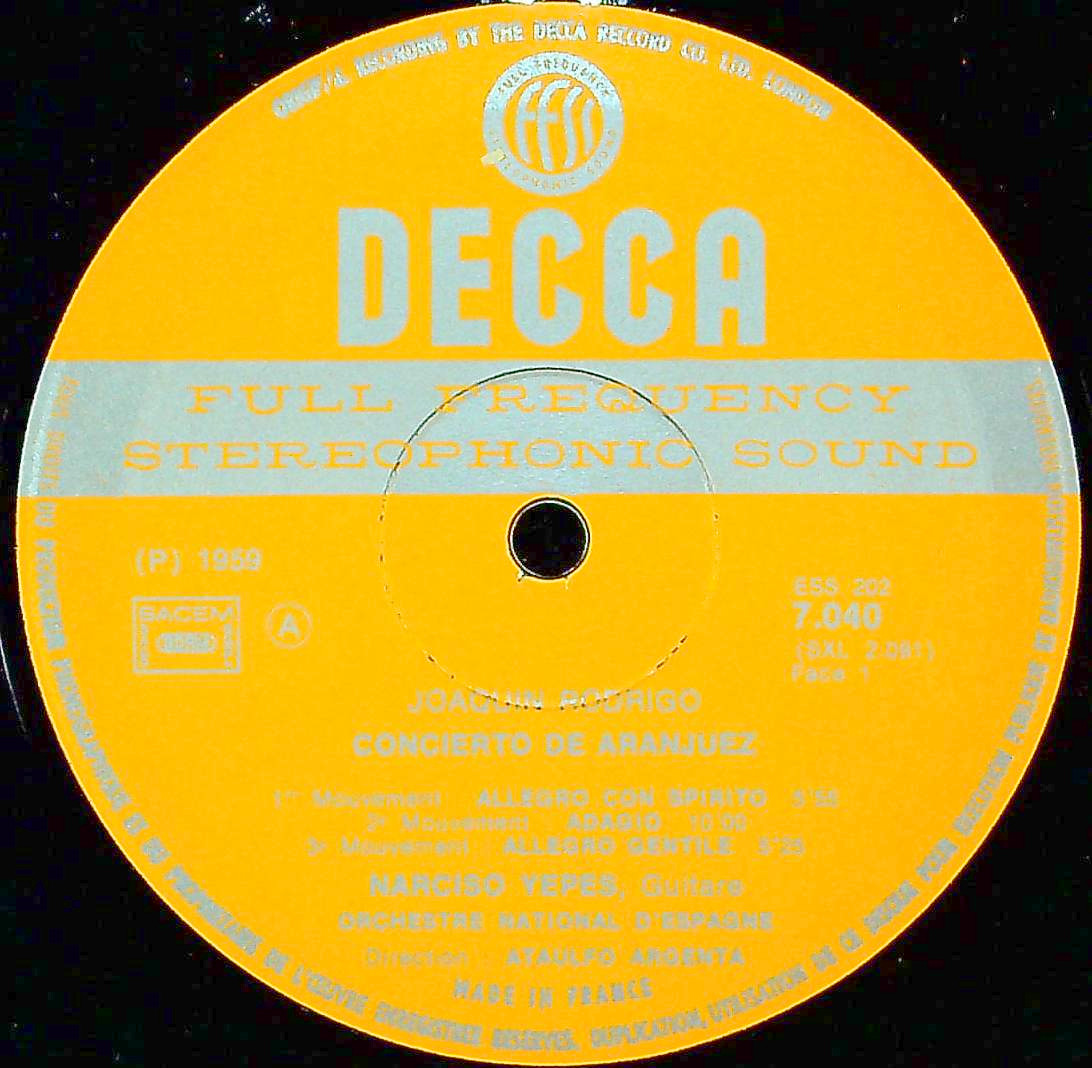 商品コード:REG-4611[仏DECCA] N.イエペス(gt) G.ソリアーノ(pf) A.アルヘンタ/ ロドリーゴ:アランフェス協奏曲, ファリャ:スペインの庭の夜