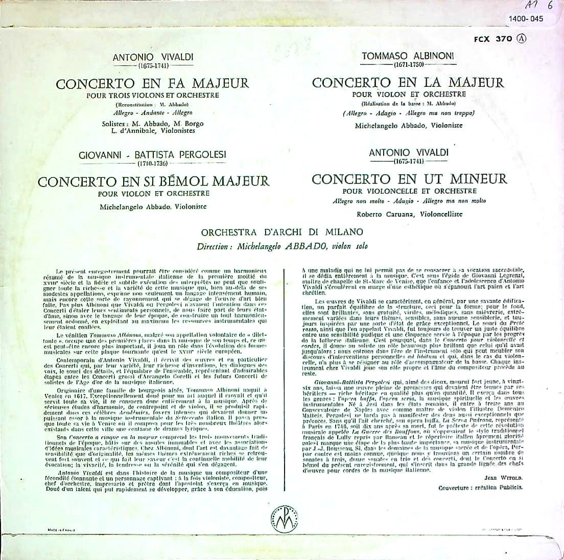 商品コード:1400-045[COLUMBIA] M.アバド(vn)指揮/ イタリア・バロック協奏曲集Vol.2/ヴィヴァルディ, ペルゴレージ, アルビノーニ