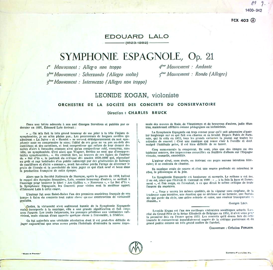 商品コード:1400-042[COLUMBIA] L.コーガン(vn)/ ラロ:スペイン交響曲Op.21