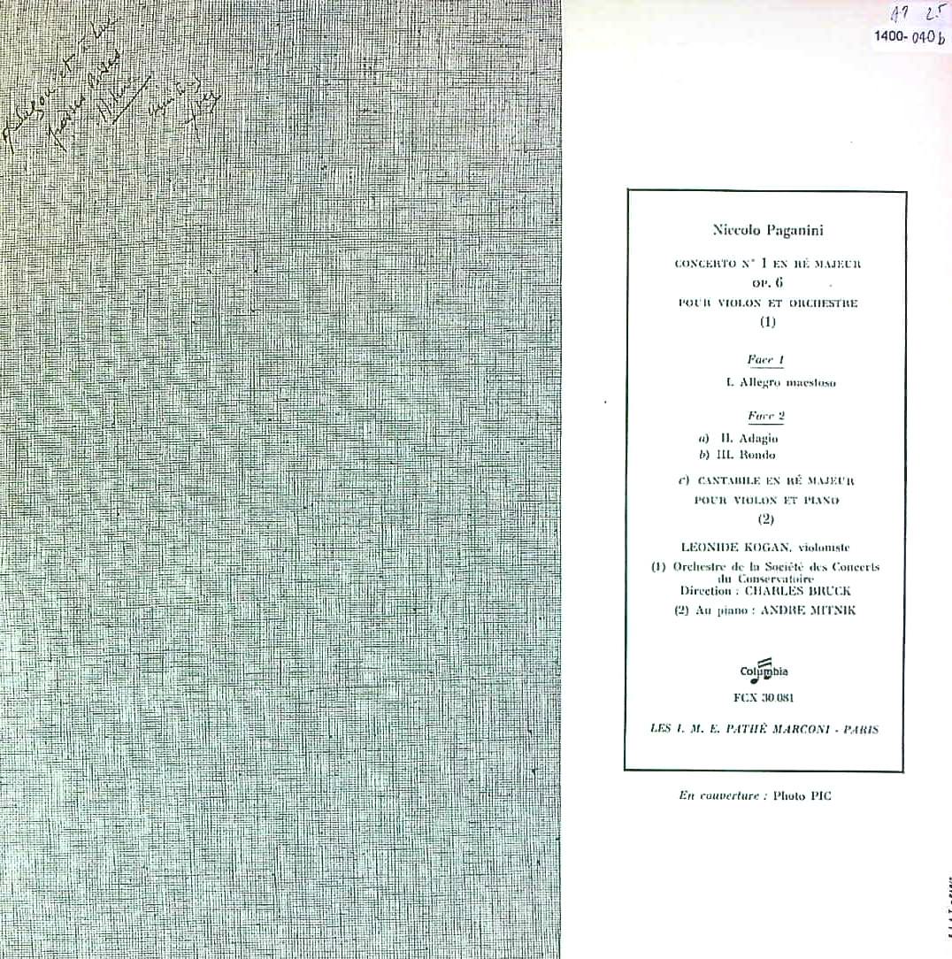 商品コード:1400-040b[COLUMBIA] L.コーガン(vn)/ パガニーニ:Vn協奏曲1番Op.6, カンタービレOp.17