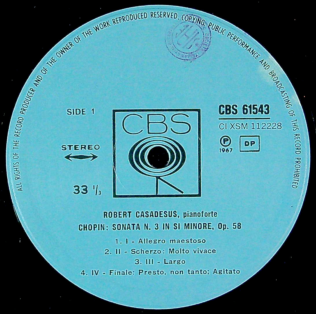 商品コード:1400-033[CBS] R.カサドシュ(pf) / ショパン:Pfソナタ3番Op.58, モーツァルト:Pfソナタ12番K.332, ハイドン:Pfソナタ31番Hob.XVI:46