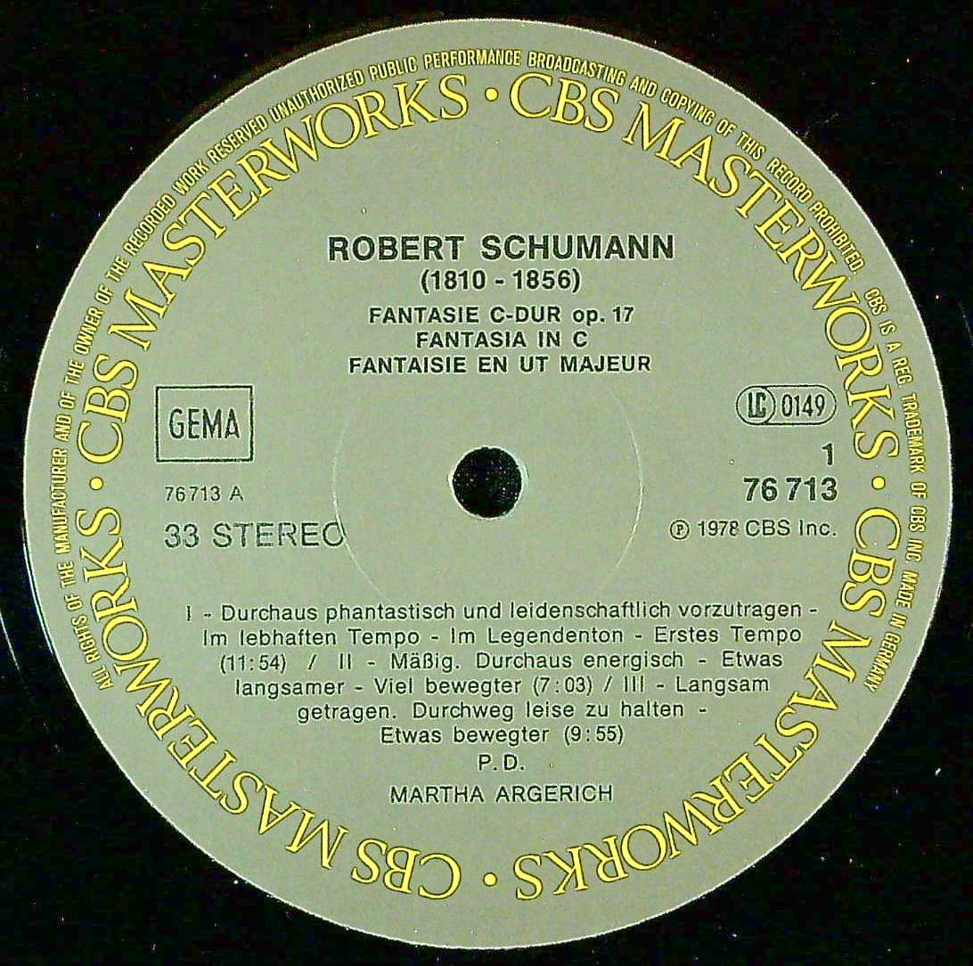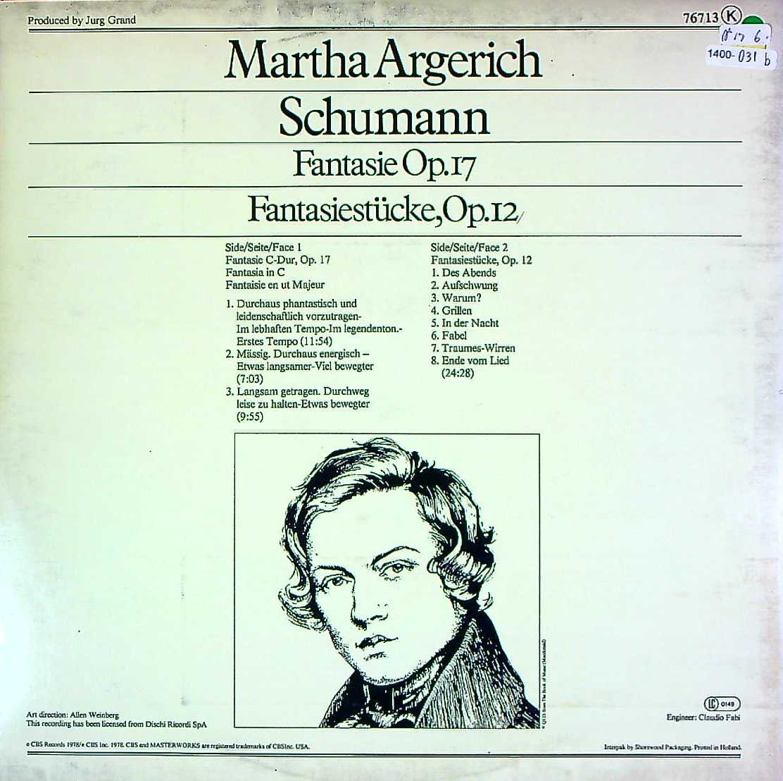 商品コード:1400-031b[CBS] M.アルゲリッチ(pf) / シューマン:幻想曲Op.17, 幻想小曲集Op.12