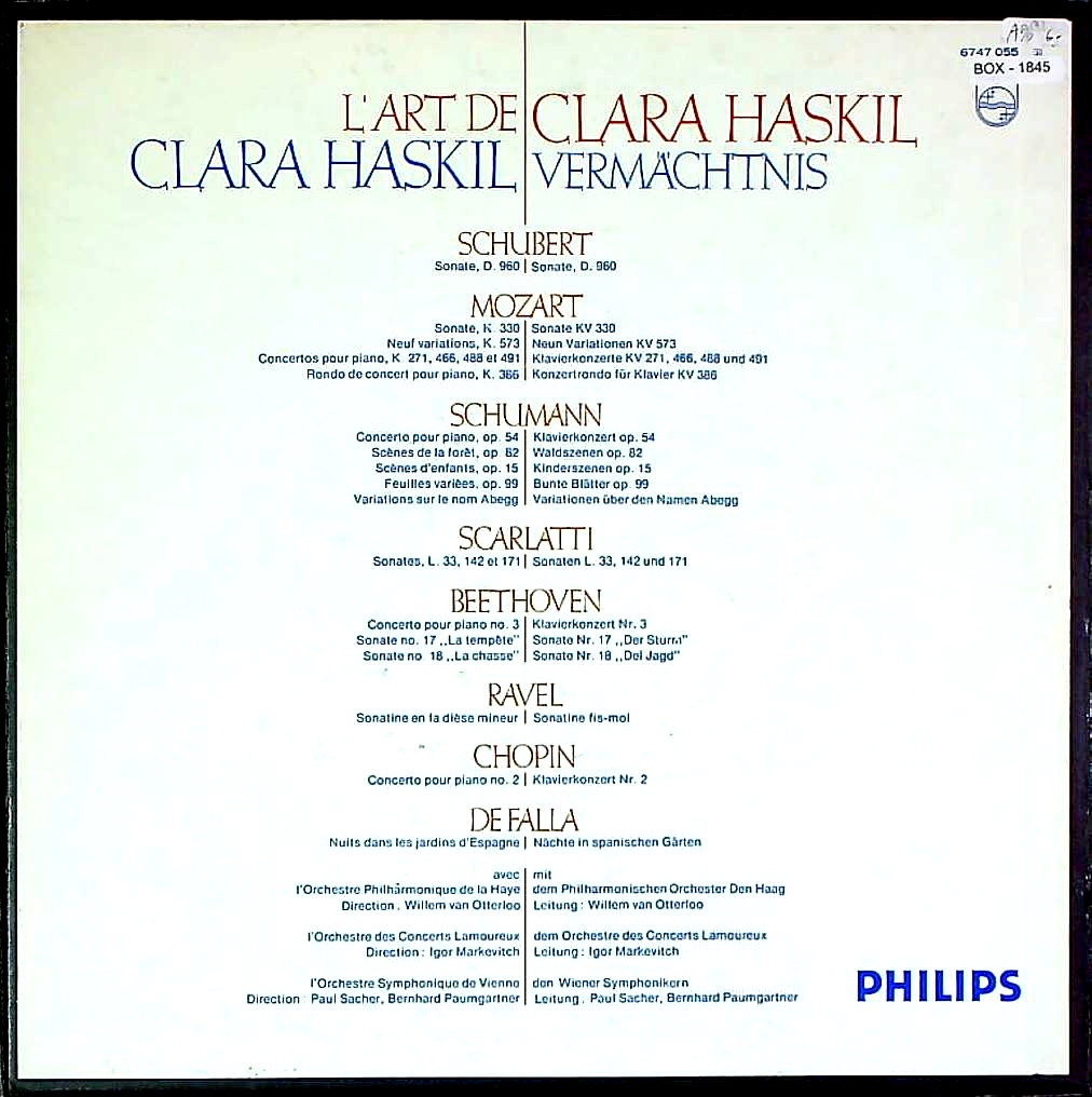 商品コード:BOX-1845[欧PHILIPS] C.ハスキル(pf)/ 「ハスキルの遺産」シューベルト, モーツァルト, ベートーヴェン, シューマン, ショパン, スカルラッティ 他