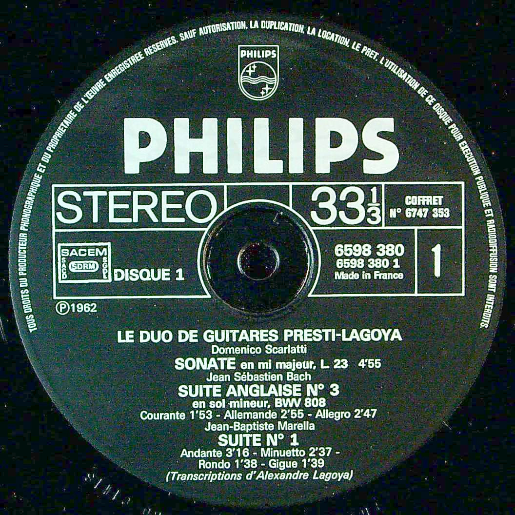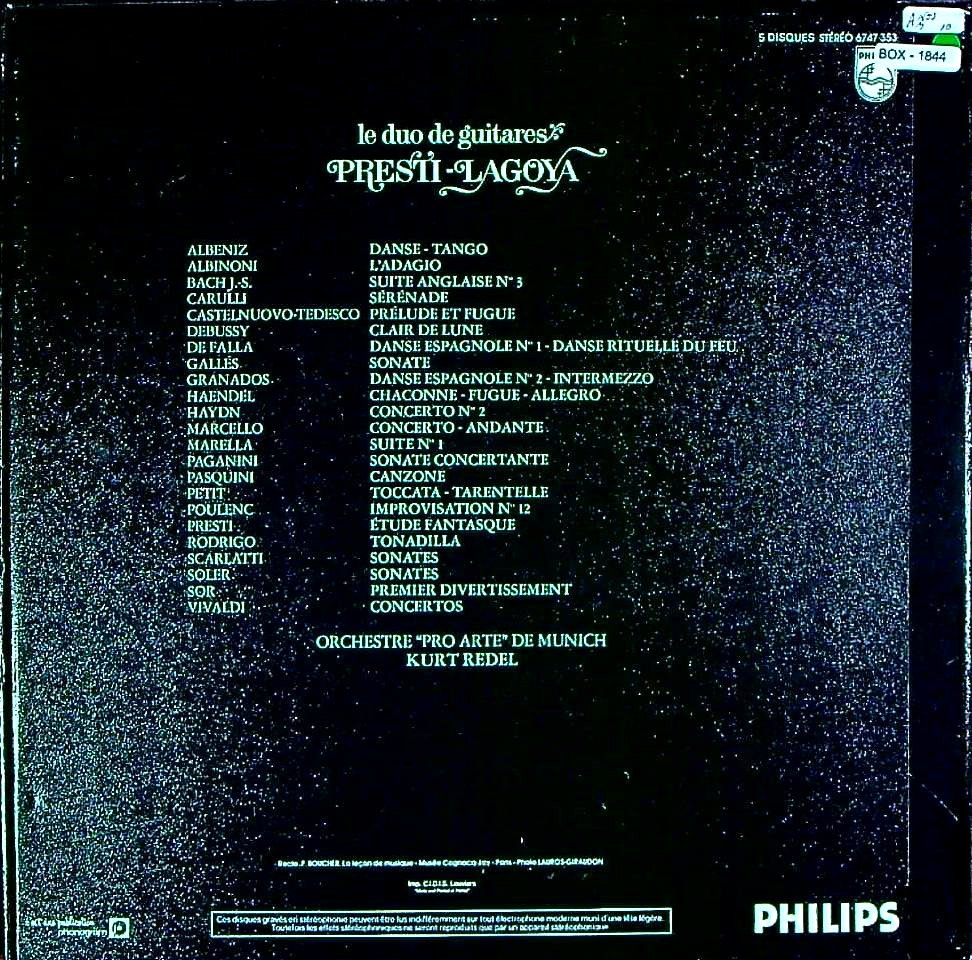 商品コード:BOX-1844[欧PHILIPS] I.プレスティ, A.ラゴヤ(gt)/ プレスティ/ラゴヤ:Gtデュオ曲集/アルベニス, アルビノーニ, バッハ, カルッリ, カステルヌォーヴォ・テデスコ 他 (全23曲)