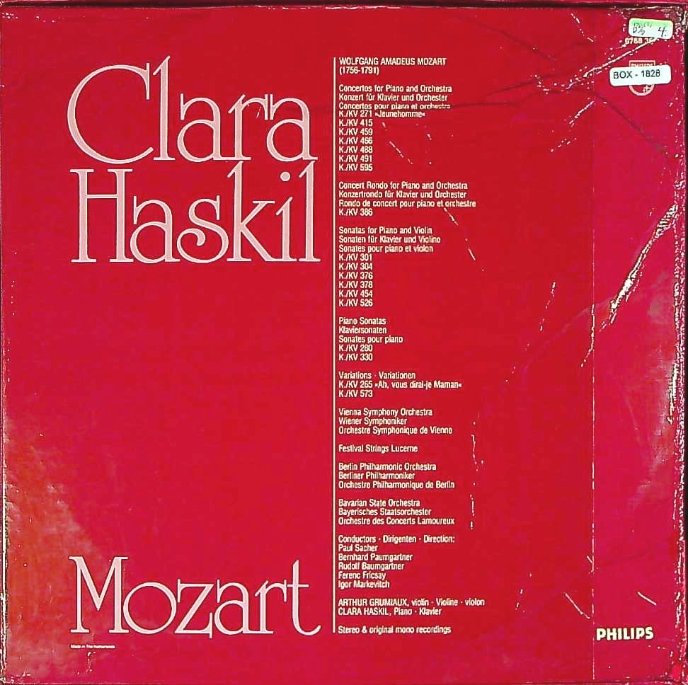 商品コード:BOX-1828p[欧PHILIPS] C.ハスキル(pf) A.グリュミオー(vn) / C.ハスキル・モーツァルト集/モーツァルト:Pf協奏曲(8曲), Vnソナタ(6曲), Pfソナタ(2曲), 変奏曲(2曲)