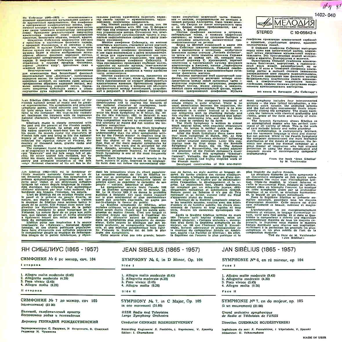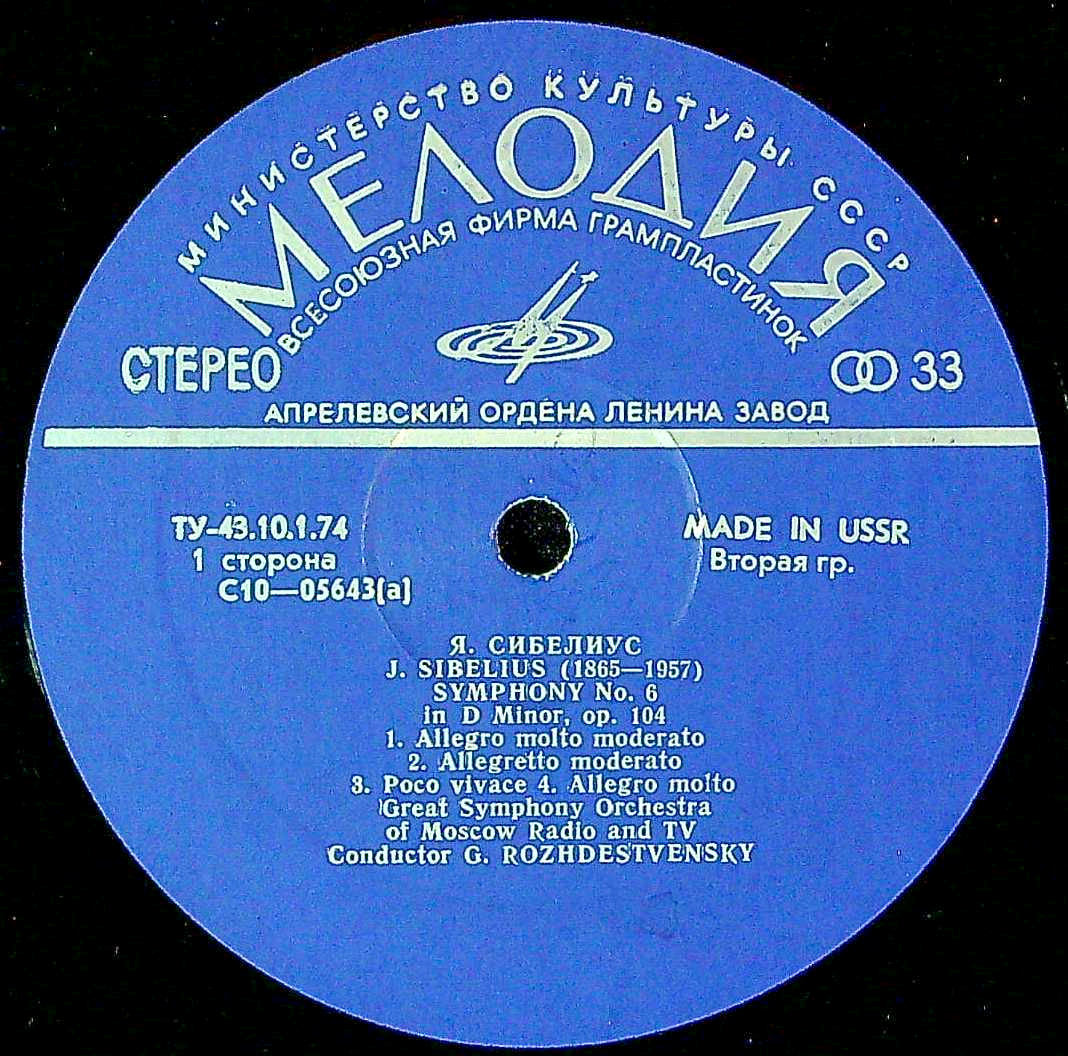 商品コード:1402-040t[MELODIYA] G.ロジェストヴェンスキー/ シベリウス:交響曲全集vol.5/交響曲6番Op.104, 交響曲7番Op.105