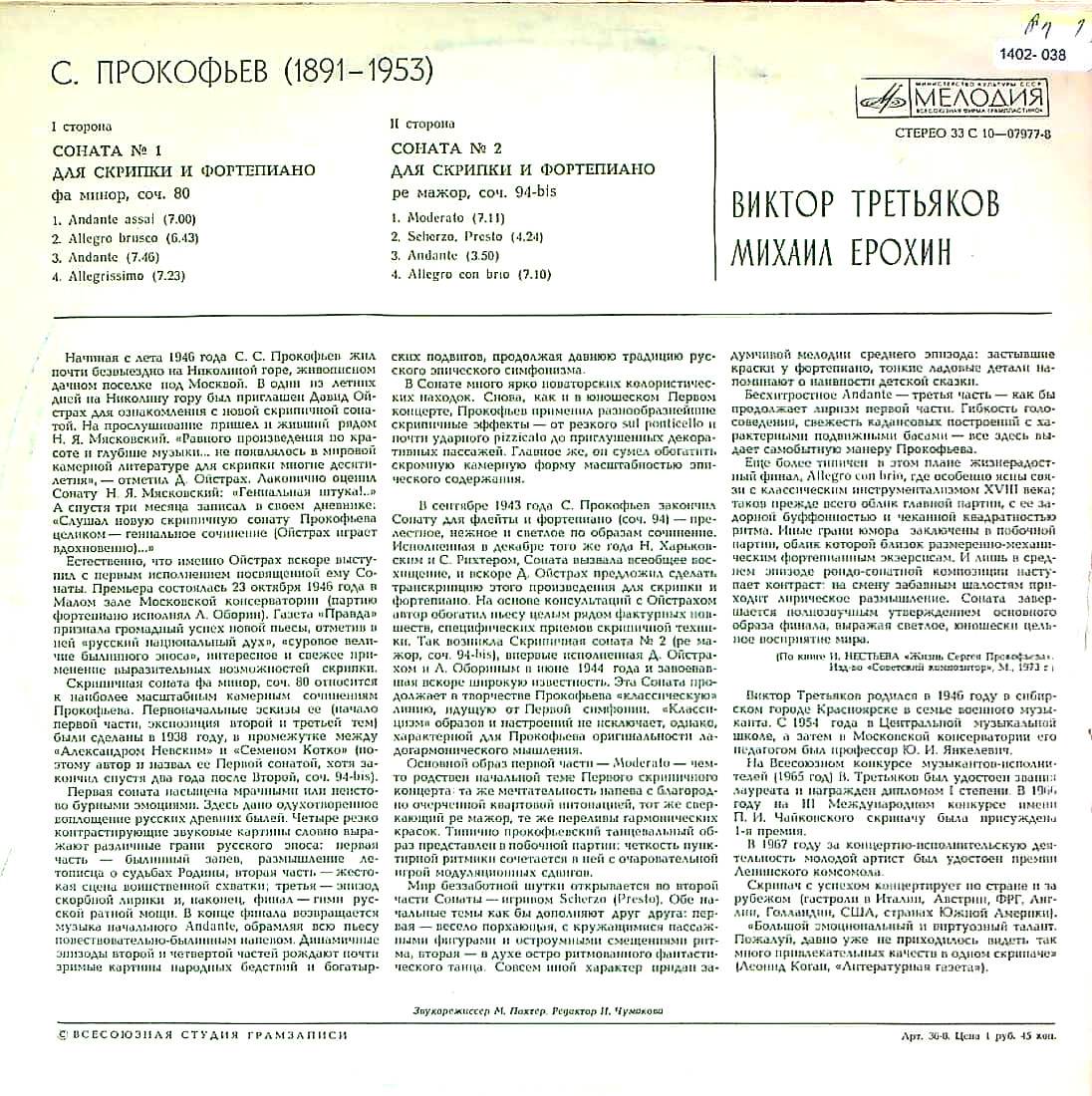 商品コード:1402-038n[MELODIYA] V.トレチャコフ(vn)/ プロコフィエフ:Vnソナタ1番Op.80, Vnソナタ2番Op.94bis