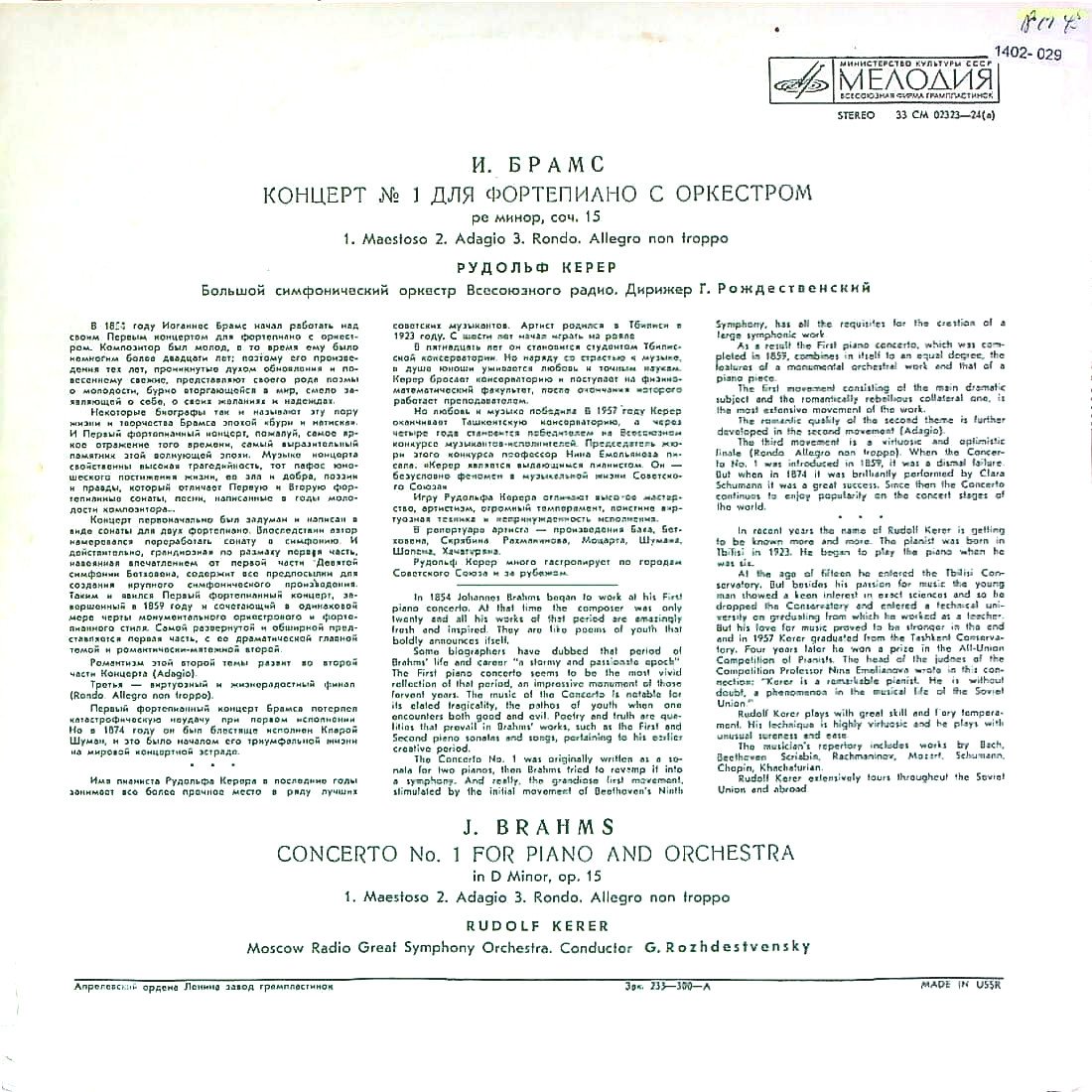 商品コード:1402-029n[MELODIYA] R.ケレール(pf)/ ブラームス:Pf協奏曲1番Op.15