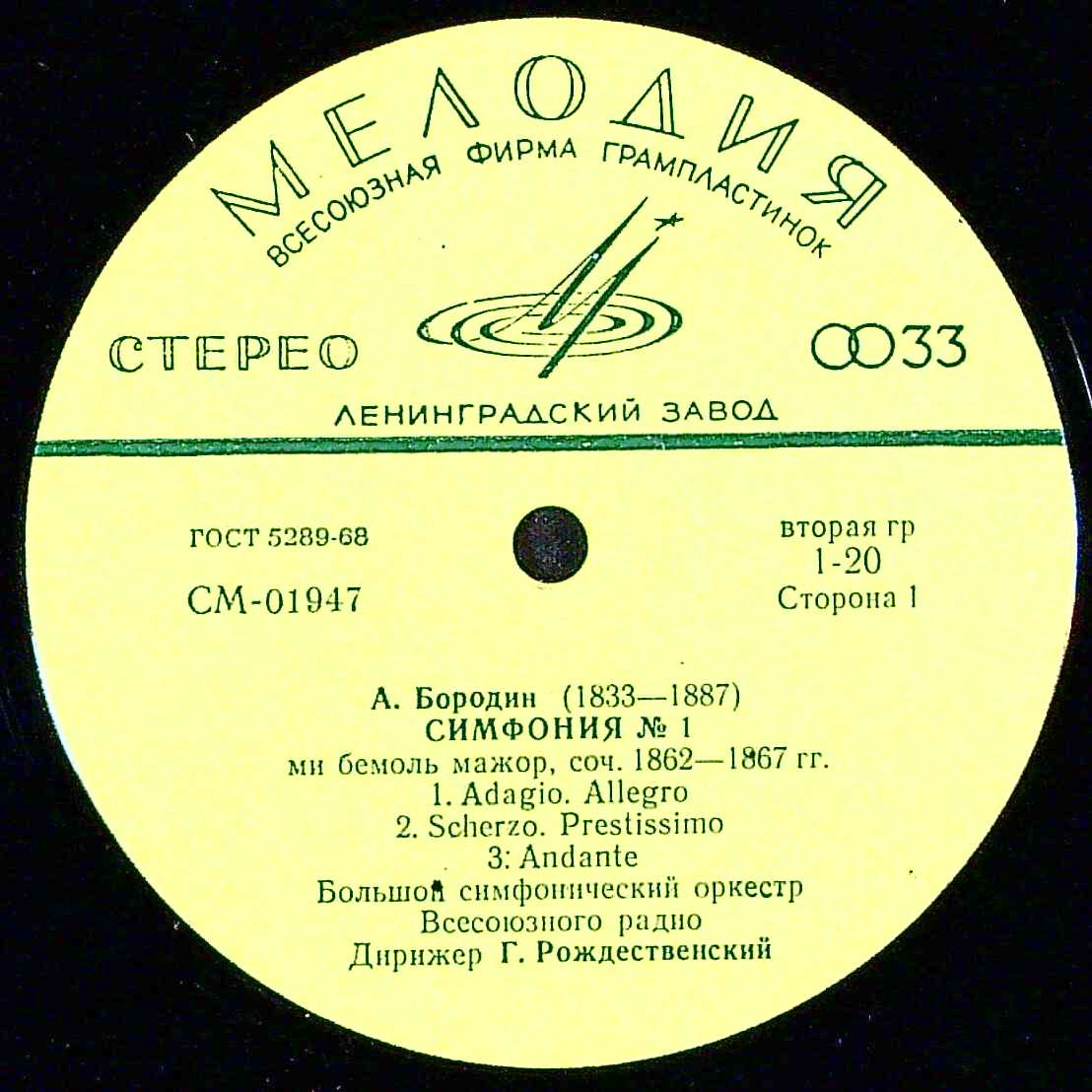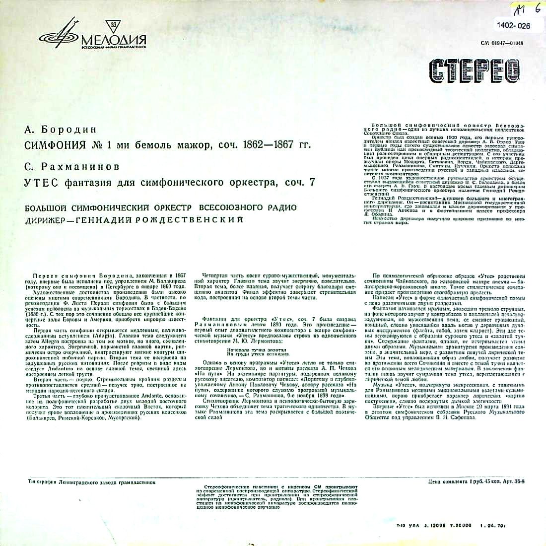 商品コード:1402-026n[MELODIYA] G.ロジェストヴェンスキー/ ボロディン:交響曲1番, ラフマニノフ:幻想曲「岩」Op.7