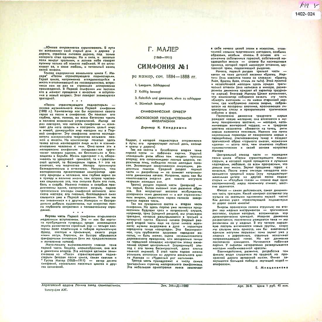 商品コード:1402-024t[MELODIYA] K.コンドラシン/ マーラー:交響曲1番「巨人」