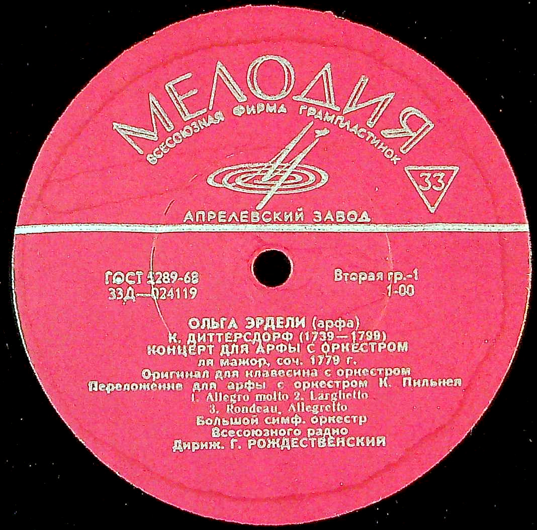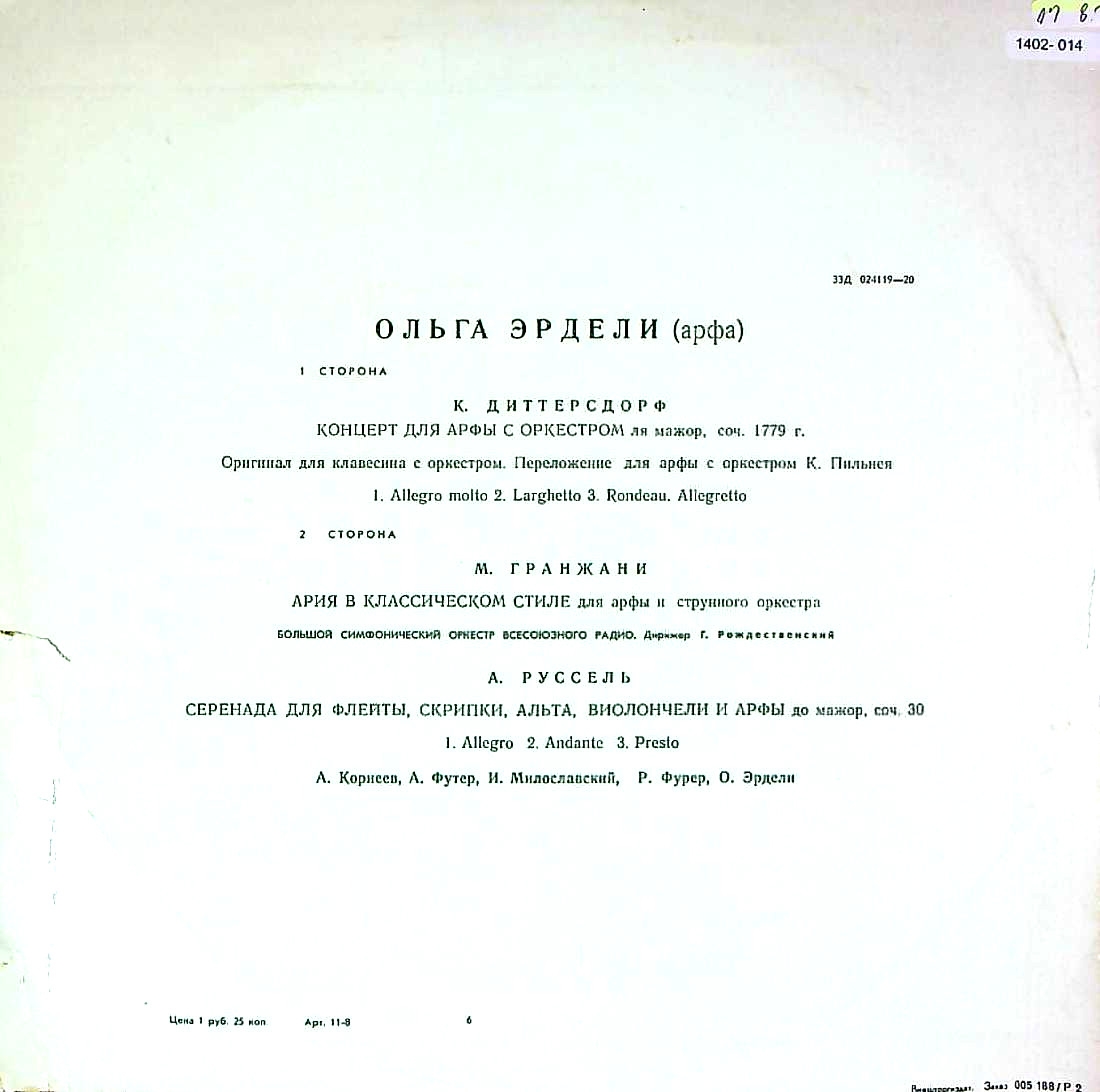 商品コード:1402-014n[MELODIYA] O.エルデリ(hp) / Hp協奏曲集/デッタースドルフ:Hp協奏曲, M.グランジャニー:古典様式のアリア, ルーセル:セレナーデOp.30