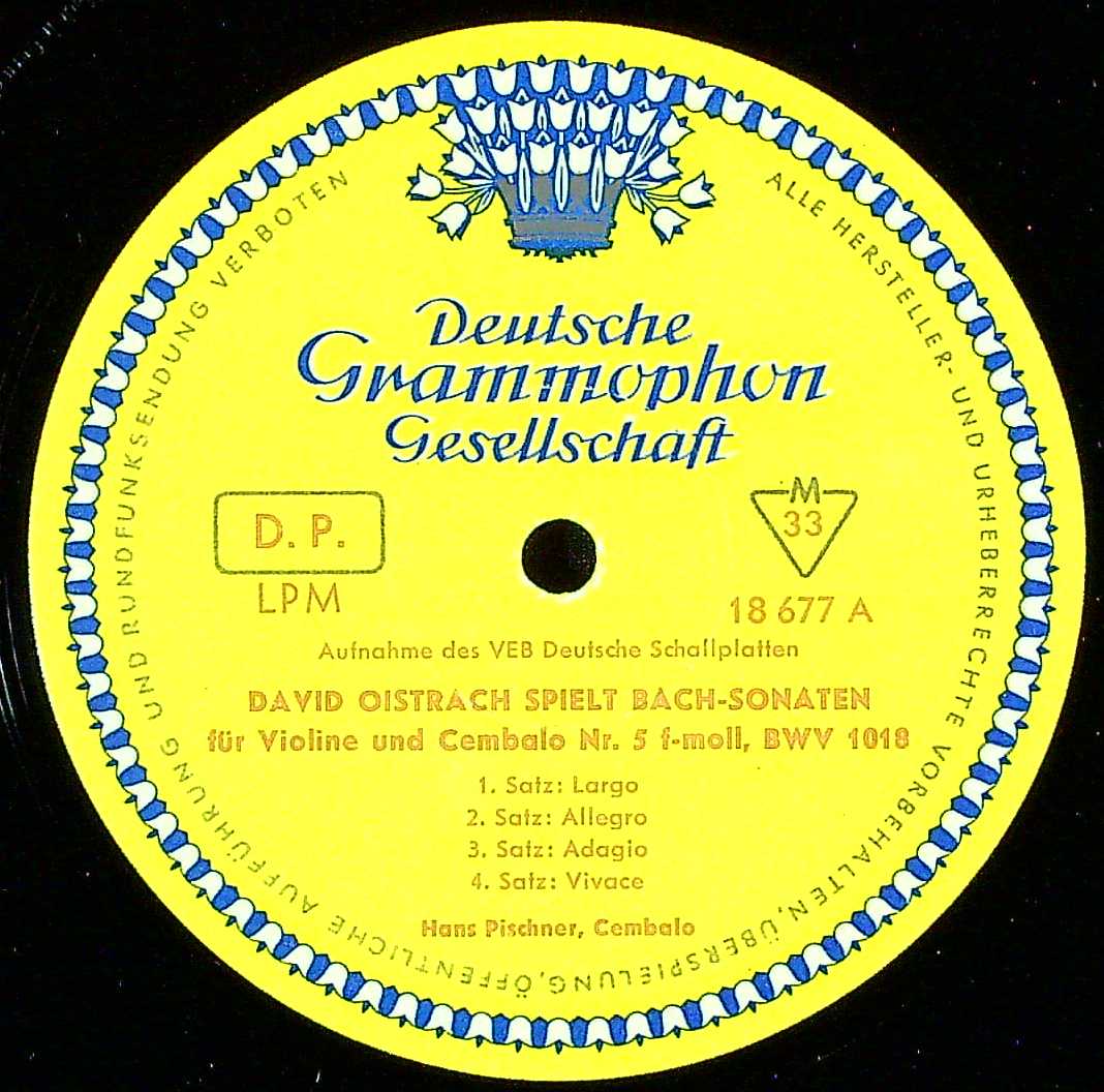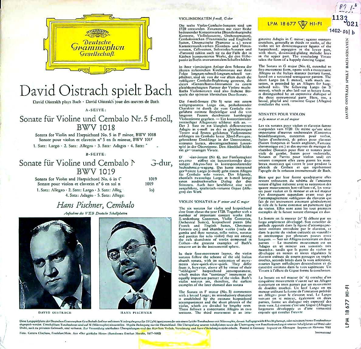 商品コード:1402-001b[DGG] D.オイストラフ(vn)/ バッハ:Vnソナタ5番BWV.1018, Vnソナタ6番BWV.1019
