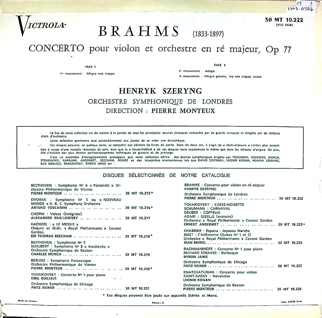商品コード:1403-056b[VICTROLA] H.シェリング(vn) ブラームス:Vn協奏曲Op.77