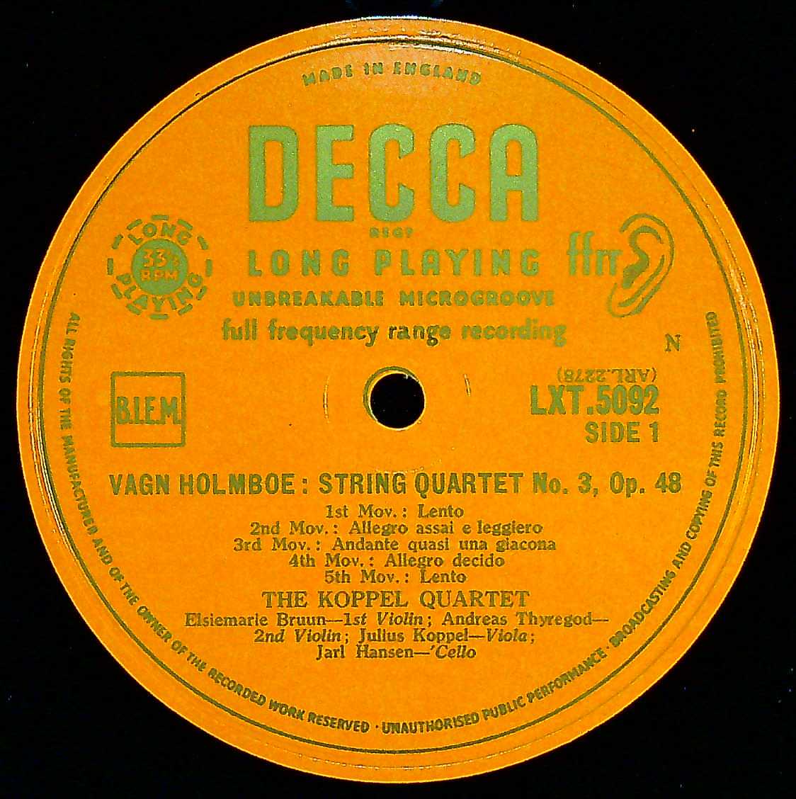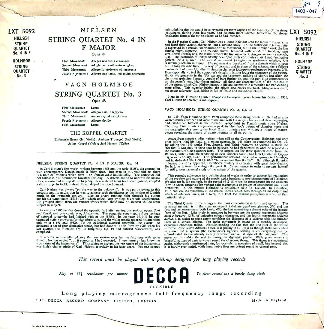 商品コード:1403-047n[DECCA] コッペルQt. / ニールセン:弦楽四重奏曲4番Op.44, ホルンボー:弦楽四重奏曲3番Op.48