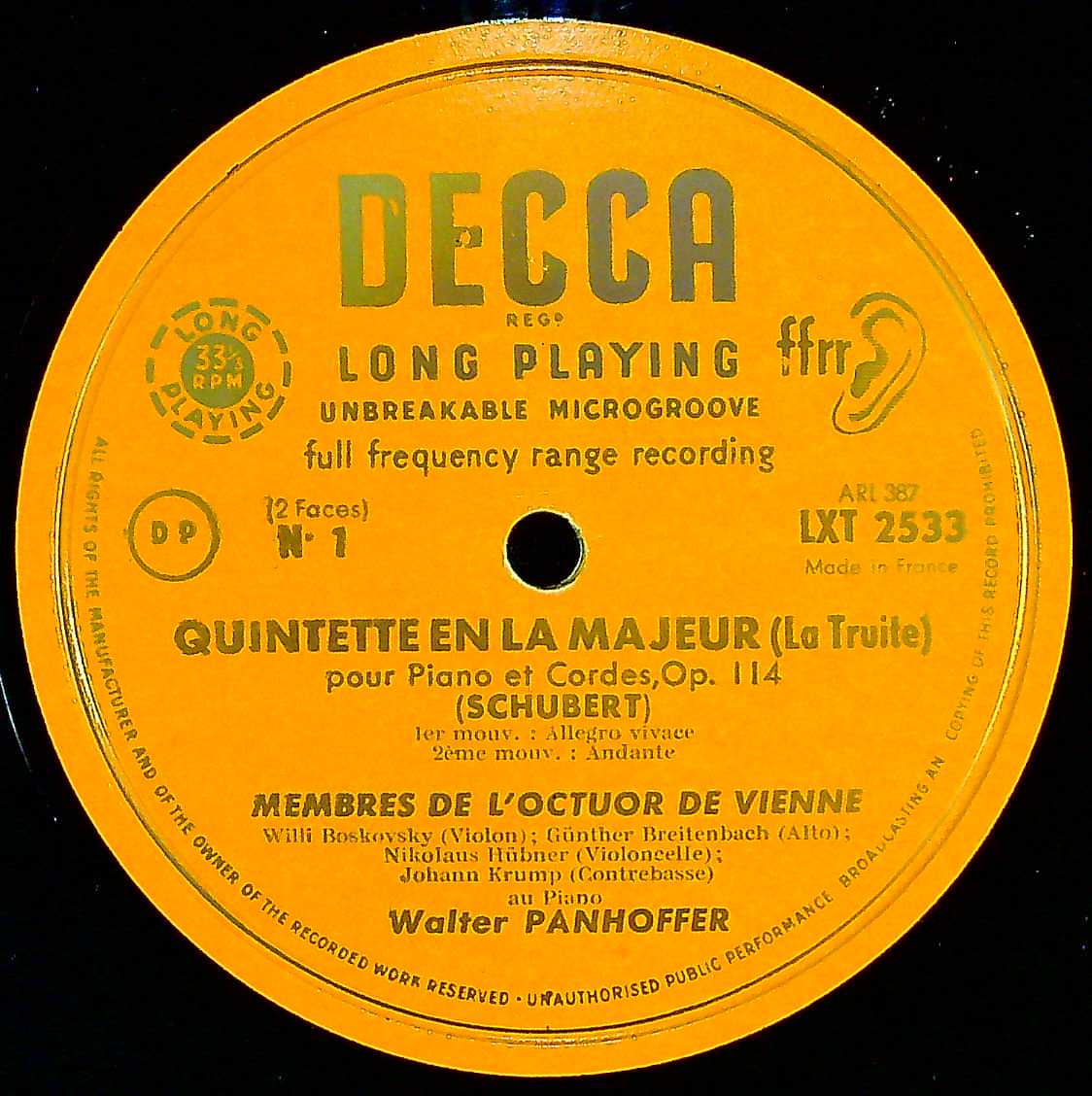 商品コード:1403-046p[DECCA] W.パンホーファー(pf) ウィーン八重奏団メンバー/ シューベルト:Pf五重奏曲D.667「鱒」