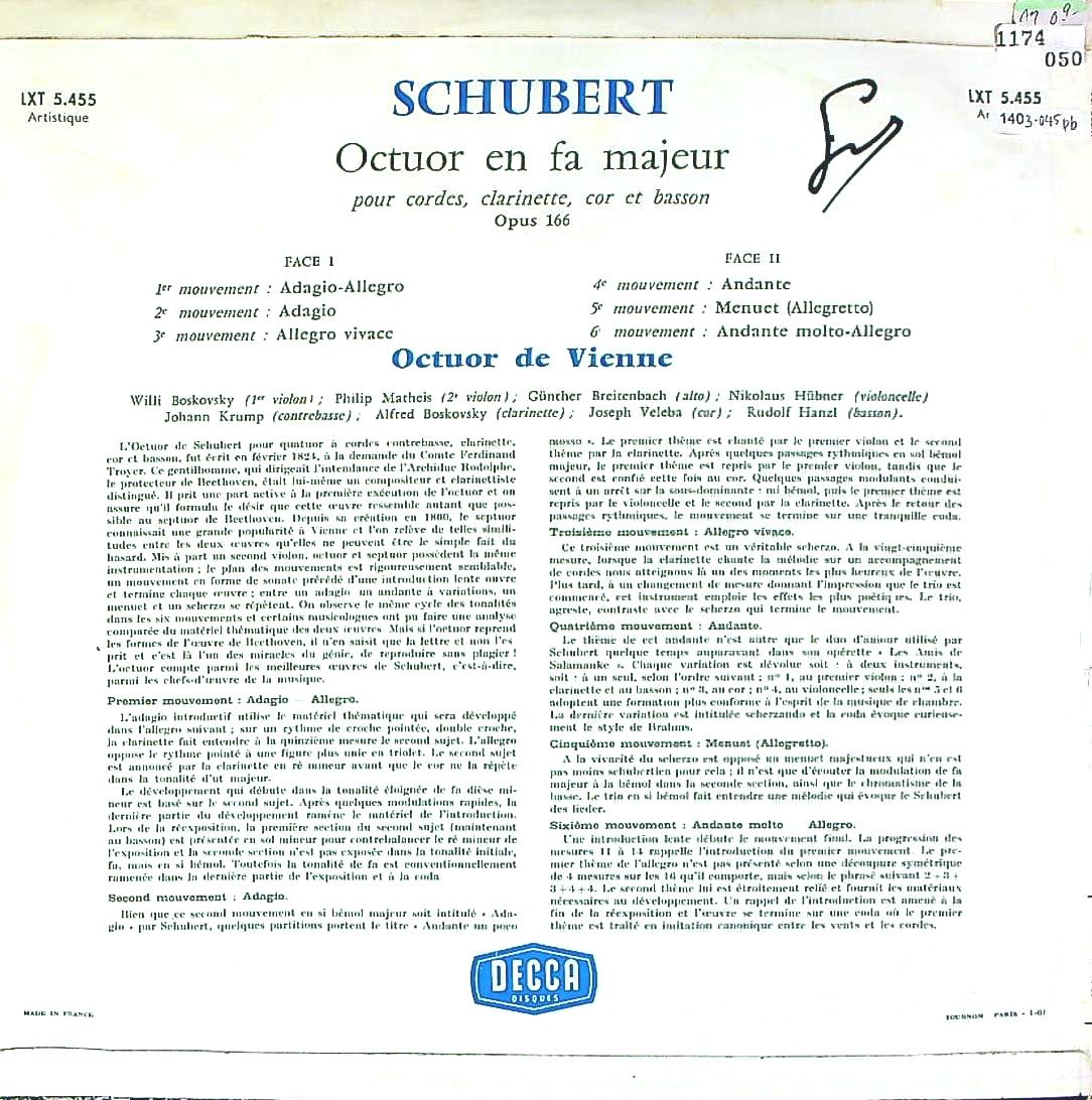 商品コード:1403-045pb[DECCA] ウィーン八重奏団/ シューベルト:八重奏曲D.803