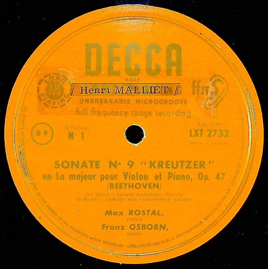 商品詳細:ヴァイオリニスト、マックス・ロスタル。今では知る人も少ないが、超が付く大物。DECCA、Westminster、MMS、Argoに1~2点ずつ録音がある。最後は意外にも1973年Eternaのケンペ/ドレスデン、シュトラウスのドン・キホーテの録音に参加していた。さて、録音の前にロスタルはベートーヴェンのVnソナタを研究し、ロスタル校訂の楽譜が出ている。これら楽譜は今日本でも入手可能。そして、演奏についての解説本まで出ているらしい。録音は1951年。当然、演奏は彼の研究成果を実践したもので、私自身多くのクロイツェルを聴いてきた中で、このLPを聴いた瞬間に、これこそ最高ランクのクロイツェルであると、頭ではなく体全体で悟った。この演奏には考え抜かれ磨き上げられた、感性だけではない長年の試行の果てに到達した境地のようなものが窺える。バランスの見事さも特筆されるが、一音入魂の原則が徹頭徹尾貫かれており、聴く者はそこに心を、いや体全体が共鳴するのだと思う。使用楽器は1732年製のグァルネリ・デル・ジェズ「チャールズ・リード」。この楽器は「The Ryuji Ueno Foundation」を主宰するDr.リュウジ・ウエノ氏によって貸与されていたらしい。現在は諏訪内晶子が使っているらしい。マックス・ロスタル(1905 – 1991)はポーランド・チェシン生まれで後に英国に帰化したユダヤ人ヴァイオリン奏者。ベルリン高等音楽院にてカール・フレッシュに学び、1928年にその助手となる。1930年から1933年までベルリン高等音楽院にてフレッシュの後任として教鞭を執ったがナチス政権の台頭によりイギリスに亡命し、1944年から1957年までロンドンのギルドホール音楽学校にて教鞭を執った。1957年から1982年までケルン音楽大学で教授を務め、また1958年からベルン音楽院でも教鞭を執る。エディト・パイネマン、アマデウス弦楽四重奏団メンバーの師である。1991年より、若い音楽家のために三年周期で開催されるマックス・ロスタル国際ヴァイオリン/ヴィオラ・コンクールがある。当社ではロスタルが録音したベート―ヴェンのクロイツェル・ソナタをCD-Rにしている。勝手な見解だが、DECCAに籍を持った全てのヴァイオリン奏者の中で最高ランクの実力の持ち主であると密かに思っている奏者である。何故かロスタルのLPはプレスが少なく、どれも希少盤といえる。一度でも知ったら見逃せないヴァイオリン奏者となることは間違いないだろう。
