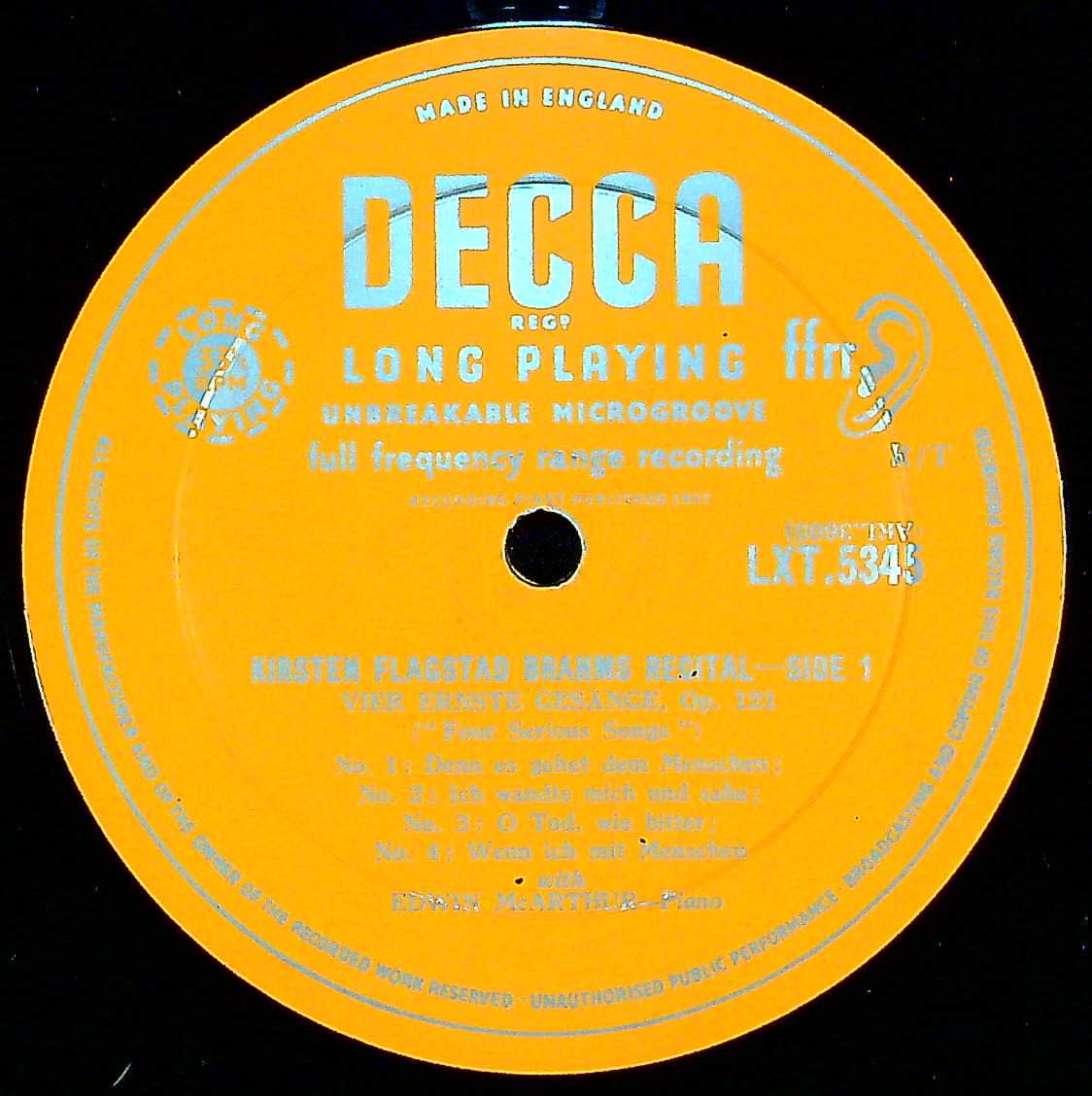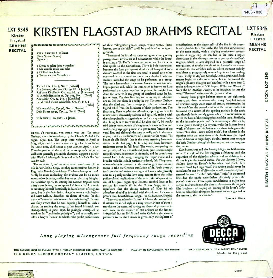 商品コード:1403-036n[DECCA] K.フラグスタート(s) / ブラームス:歌曲集