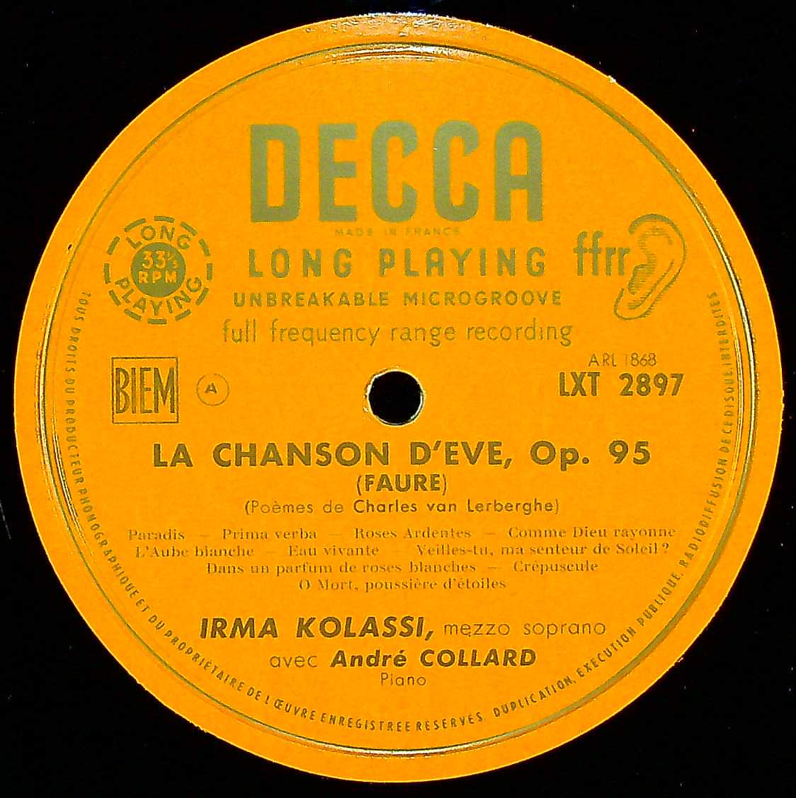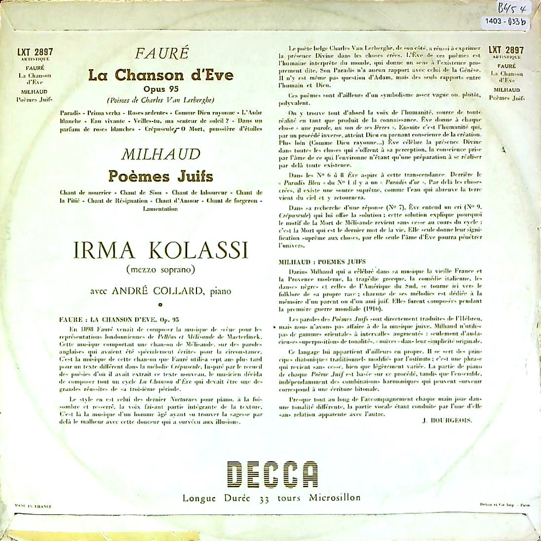 商品コード:1403-033b[DECCA] I.コラッシ(ms)/ フォーレ:歌曲集「イヴの歌」Op.95