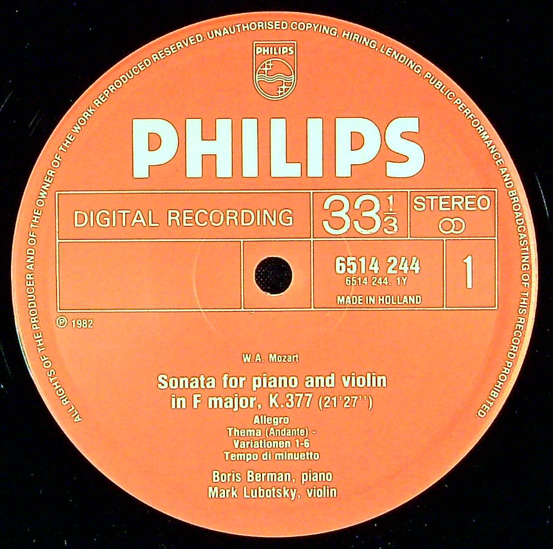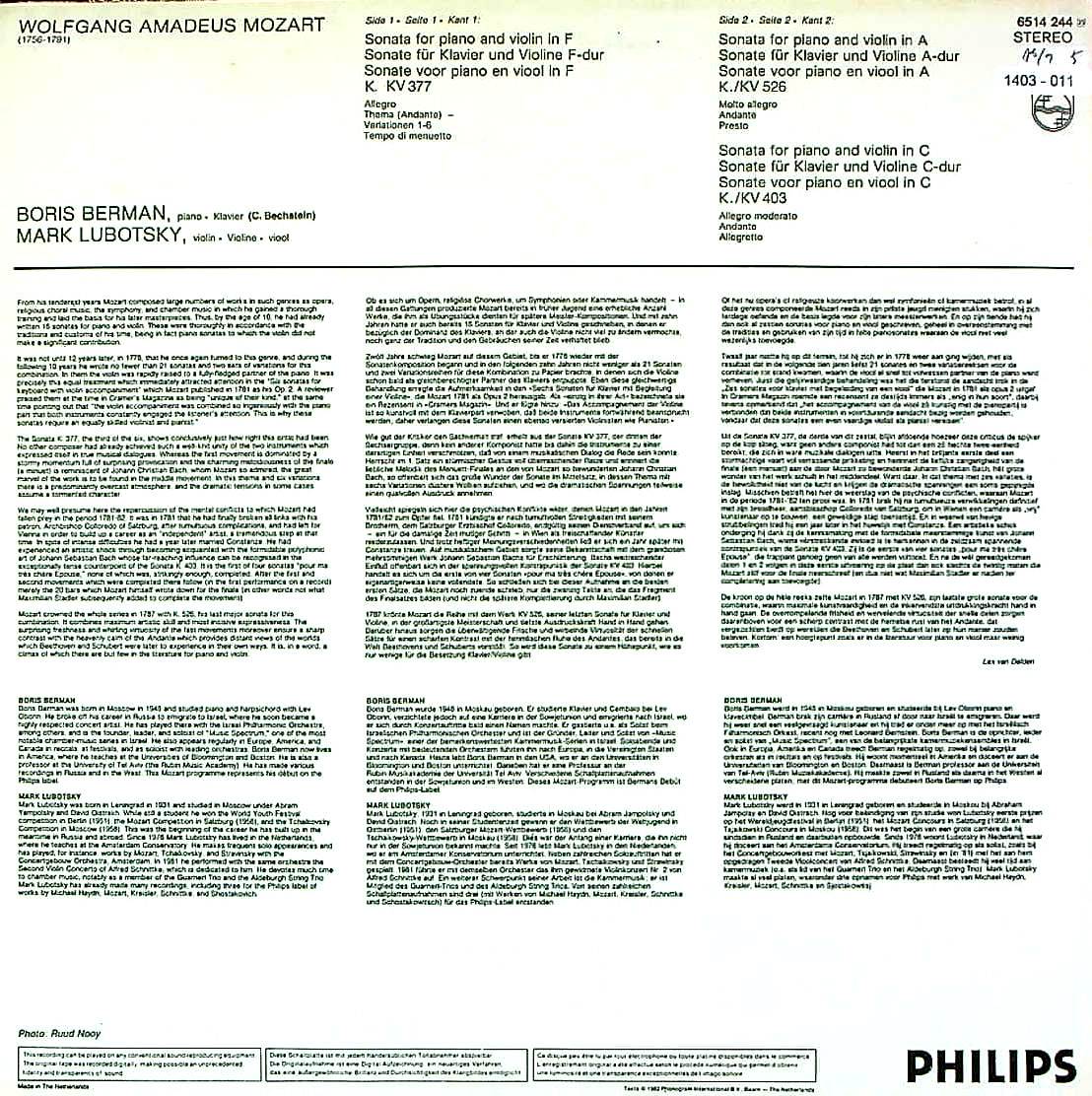 商品コード:1403-011[PHILIPS] M.ルボツキー(vn)/ モーツァルト:Vnソナタ集/Vnソナタ33番K.377, Vnソナタ42番K. 526, Vnソナタ38番K.403