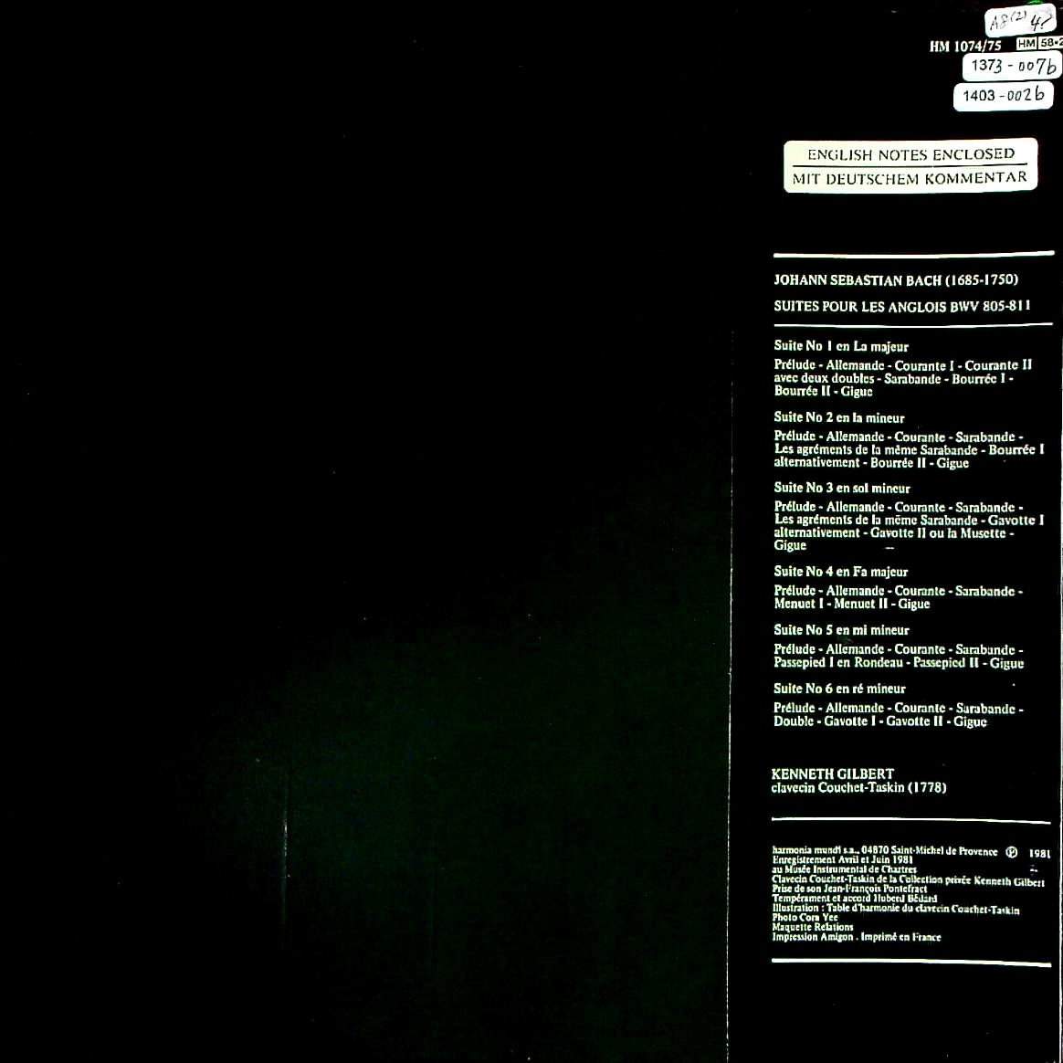 商品コード:1403-002b[HM] K.ギルバート(cemb) / バッハ:イギリス組曲(全6曲)BWV.805-811