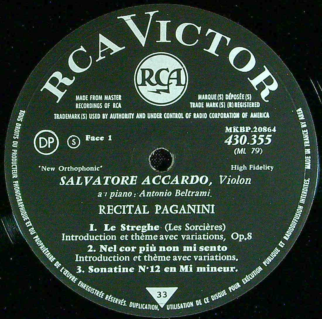 商品コード:1404-034b[RCA] S.アッカルド(vn)/ パガニーニ作品集/Vnソナタ12番Op.3-6, 魔女たちの踊りOp.8 他