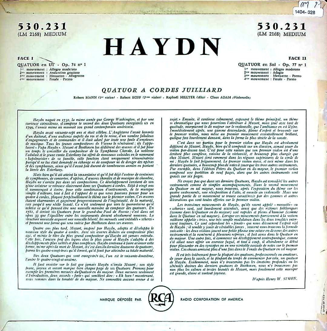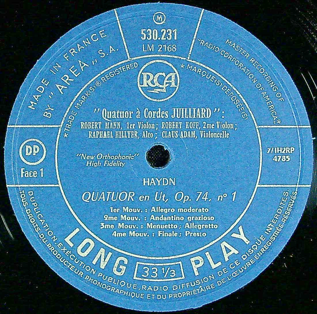 商品コード:1404-028[RCA] ジュリアードQt. / ハイドン:弦楽四重奏曲72番Hob.Ⅲ:72, 弦楽四重奏曲81番 Hob.Ⅲ:81「挨拶」