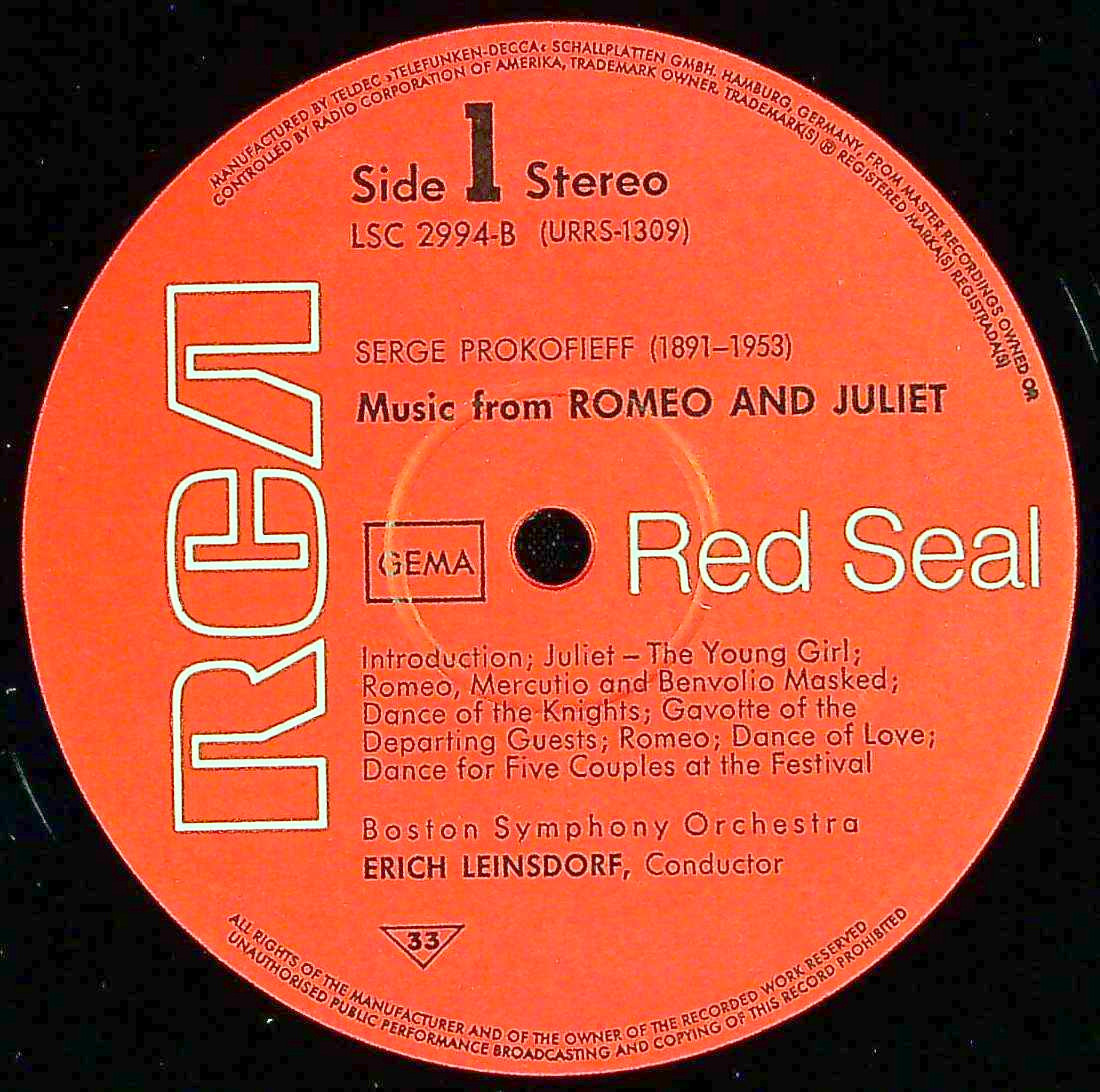 商品コード:1404-026b[RCA] E.ラインスドルフ/ プロコフィエフ:バレエ音楽「ロメオとジュリエット」Op.64(ハイライト)